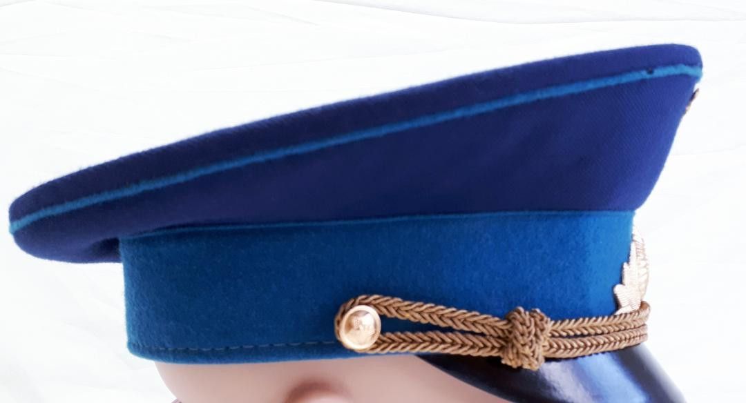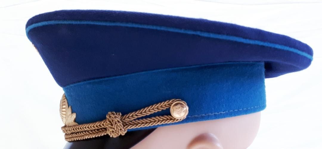 Russische Schirmmütze Offizier Luftverteidigung K 58 Parade Schirmmütze für Offiziere der Luftverteidigung Größe: 56 Gewicht: ca. 292 g Zustand: gut-gebraucht/getragen ( kleinere Abnutzungs- sowie Tragespuren kommen vor)