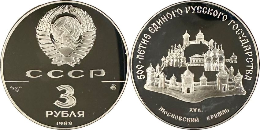 Russland Silbermünze PP/Proof 3 Rubel 1989 Kreml in Moskau