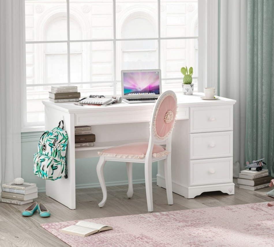Rustika Kinderschreibtisch und 4 Schubladen in weiß