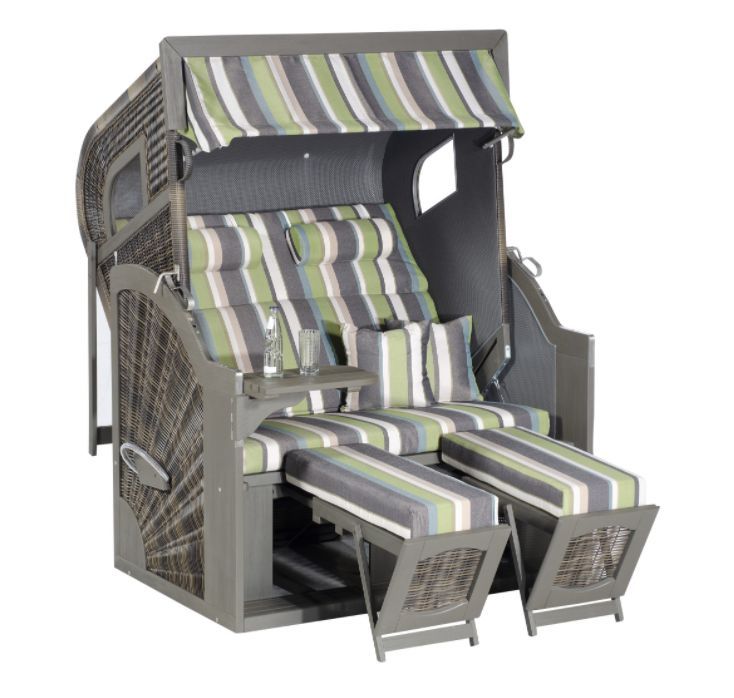 • Rustikal 15Z Gartenstrandkorb 2-sitzer Akazienholz Grau