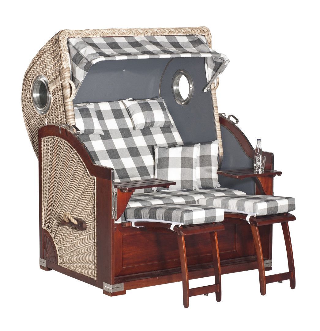 • Rustikal 500 Plus-Comfort Strandkorb Bullaugen 3/4 Liegemodell 2-Sitzer Grau