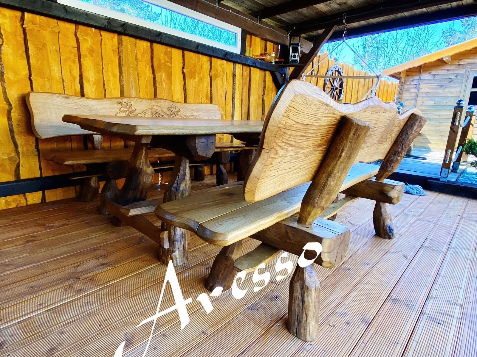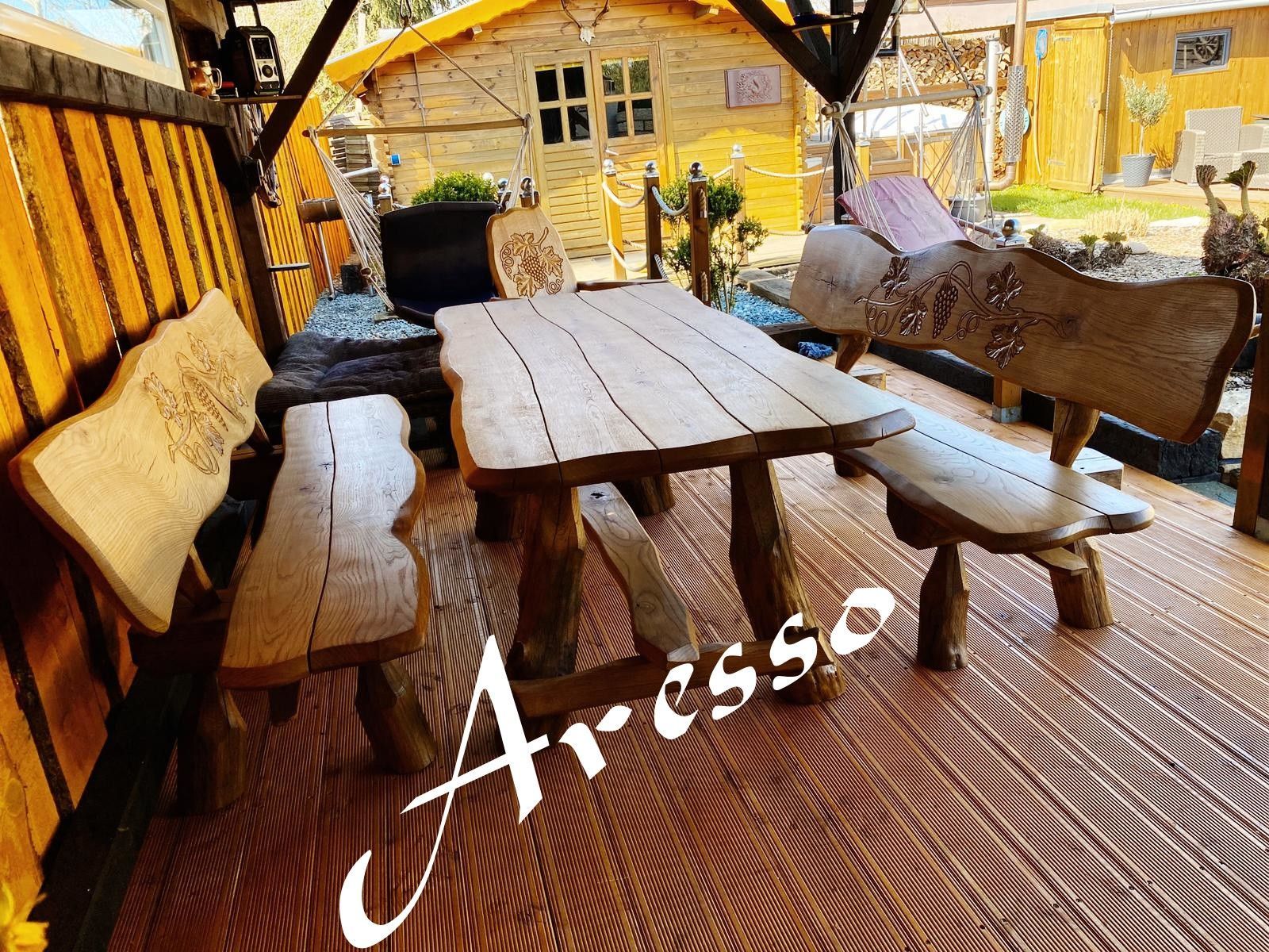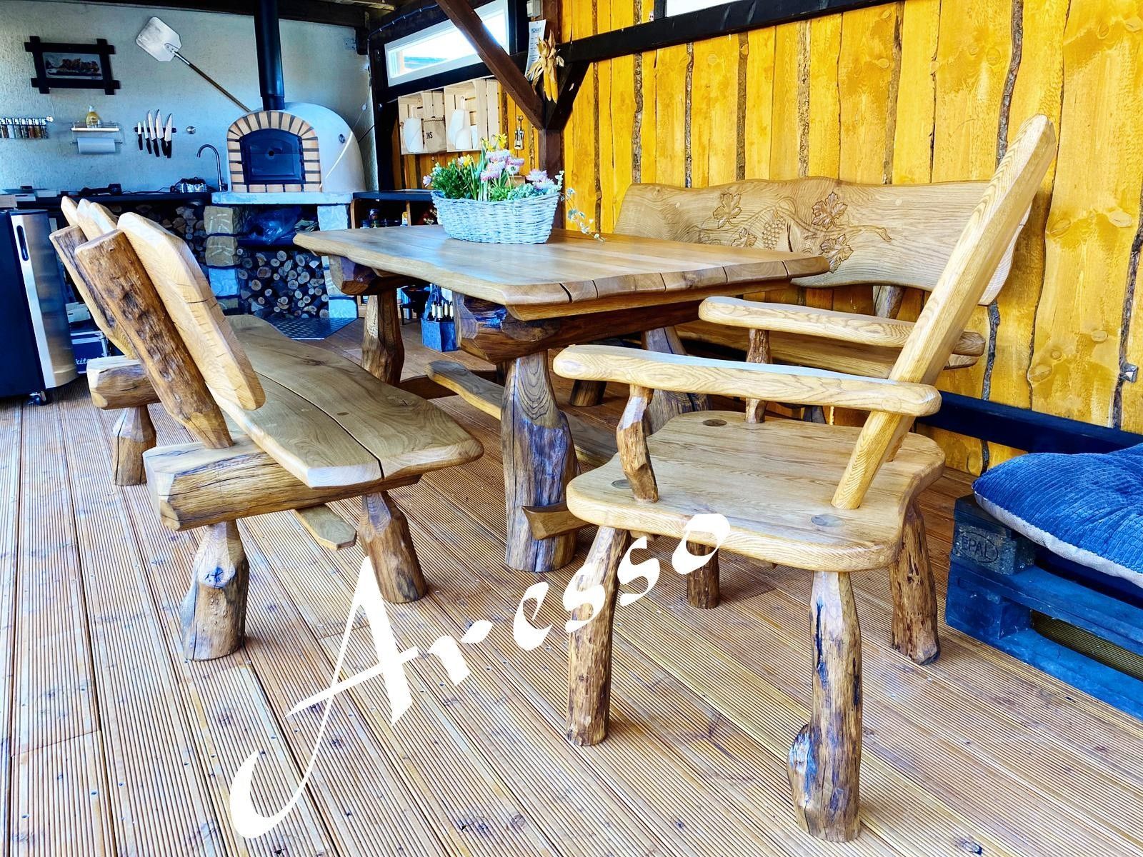 Rustikale Gartenmöbel aus Eichenholz Massivholz, Gartengarnitur Eiche Massiv mit Sch