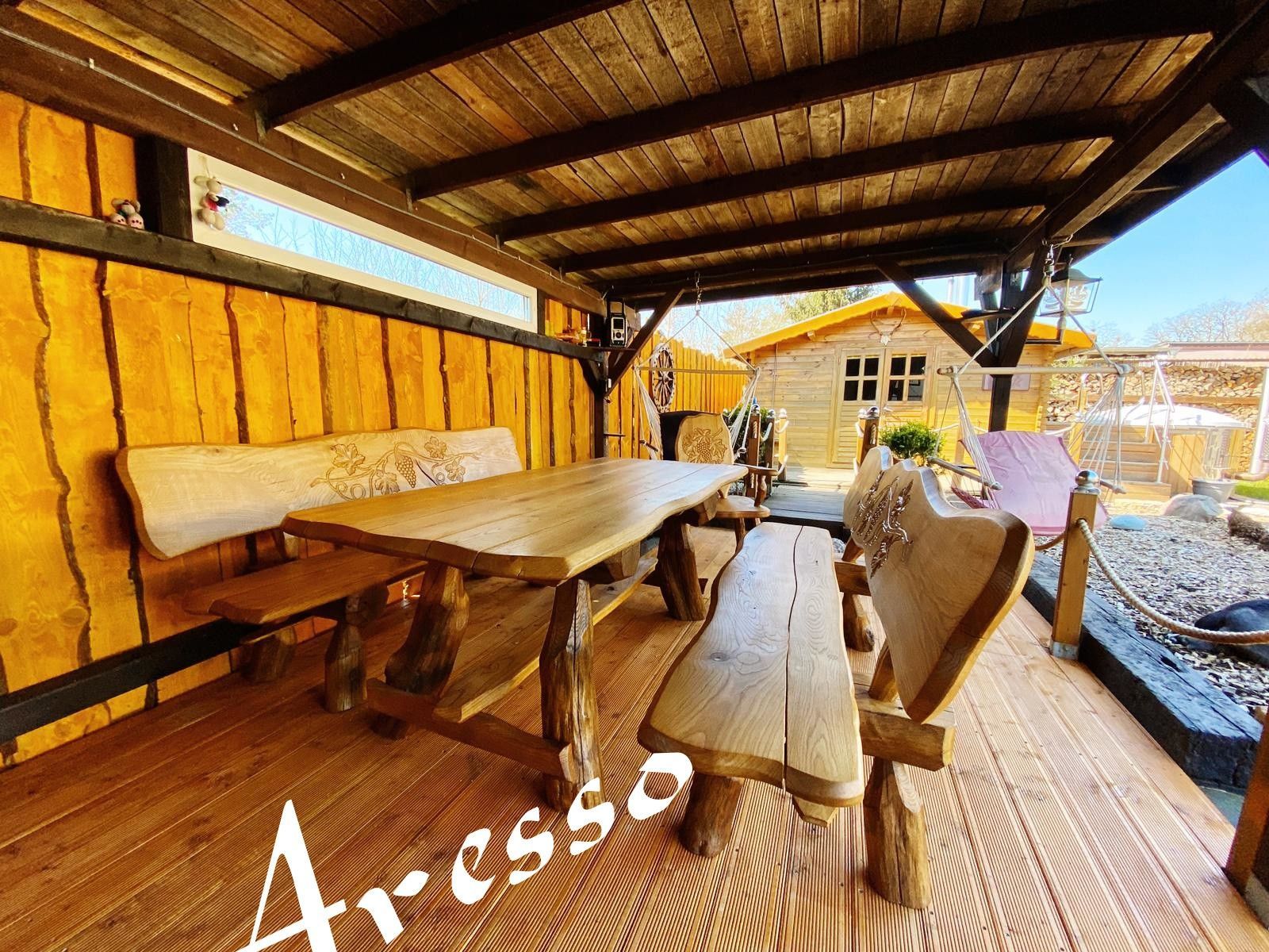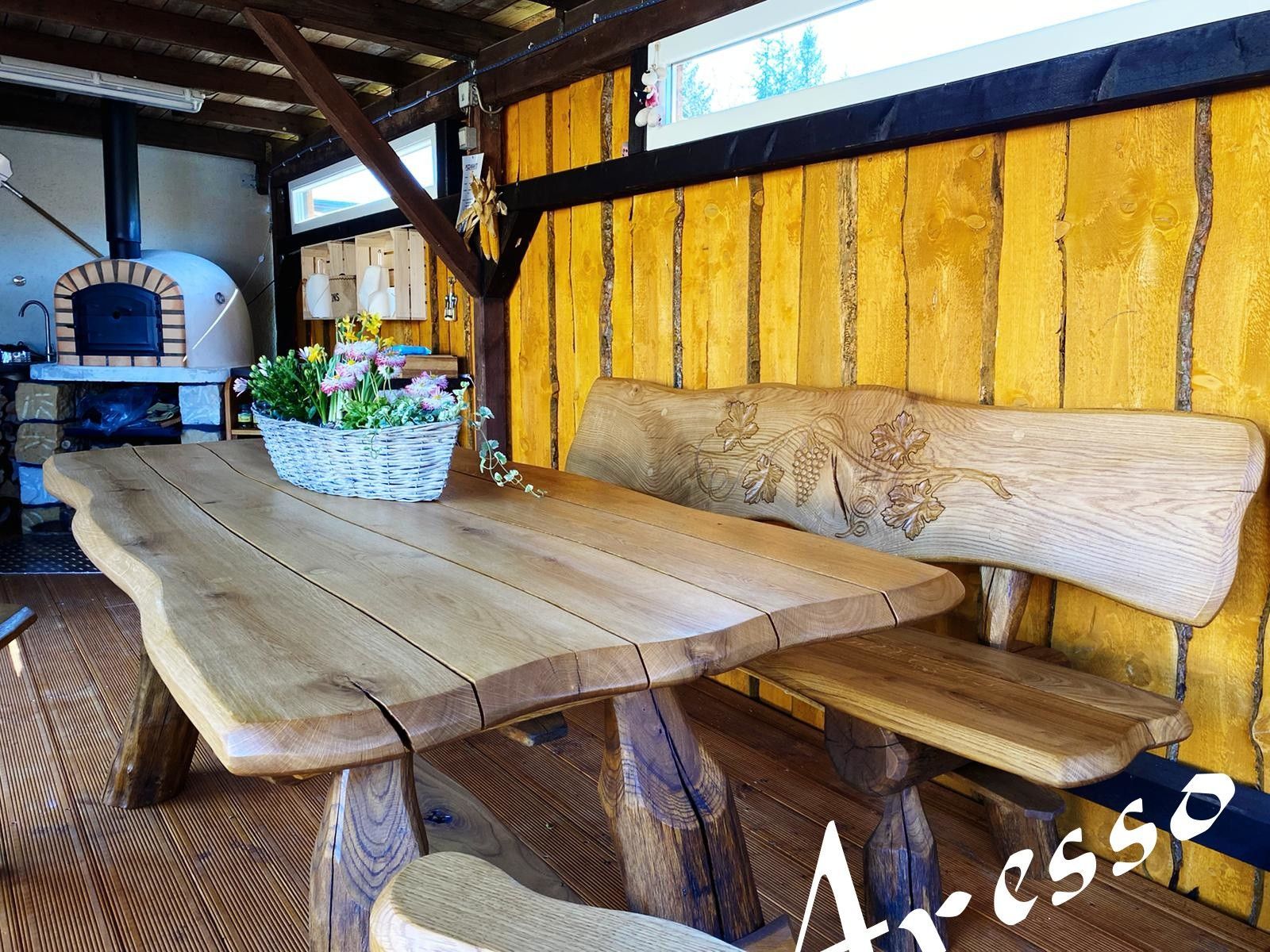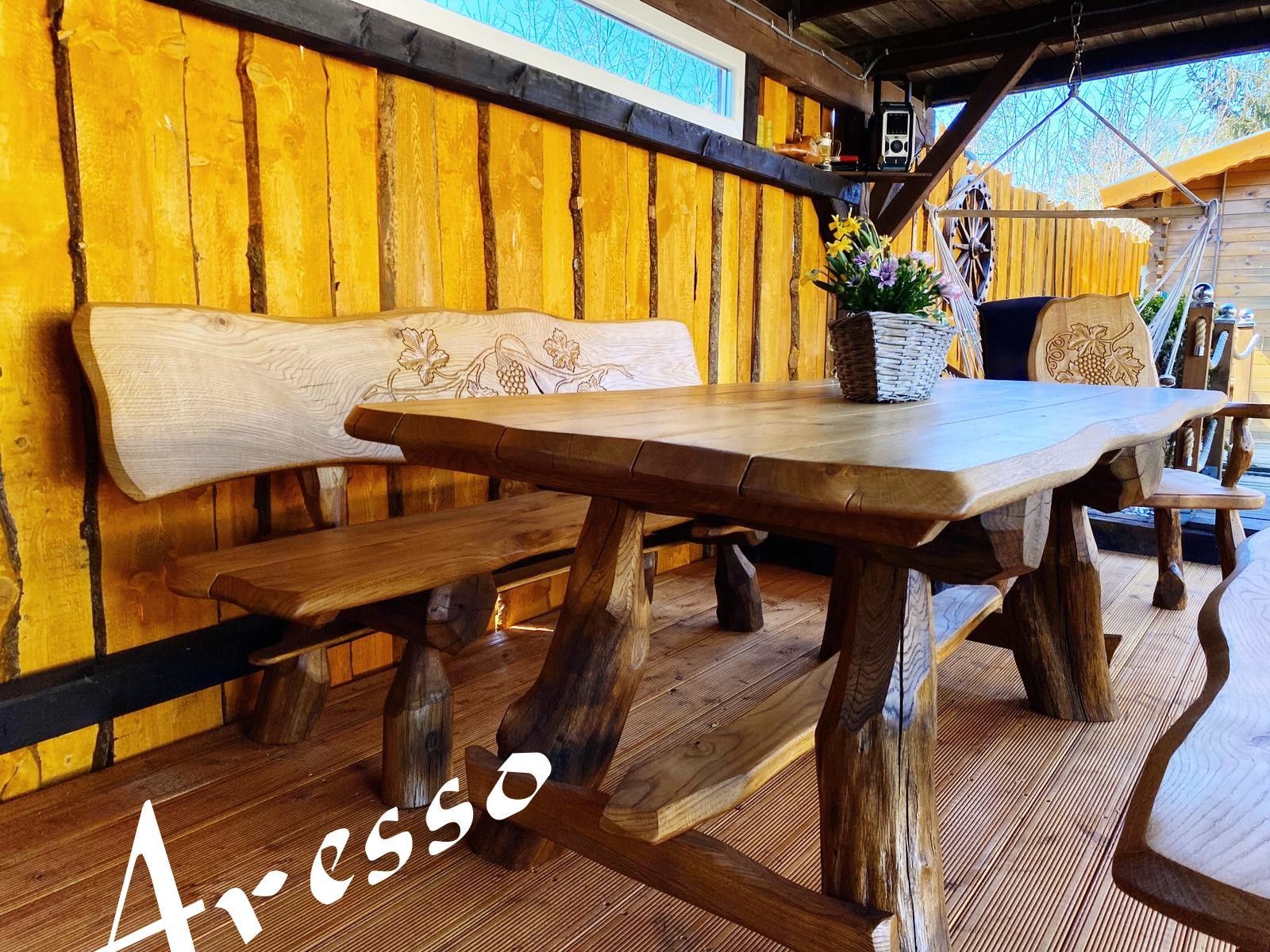 Rustikale Gartenmöbel aus Eichenholz Massivholz, Gartengarnitur Eiche Massiv mit Sch