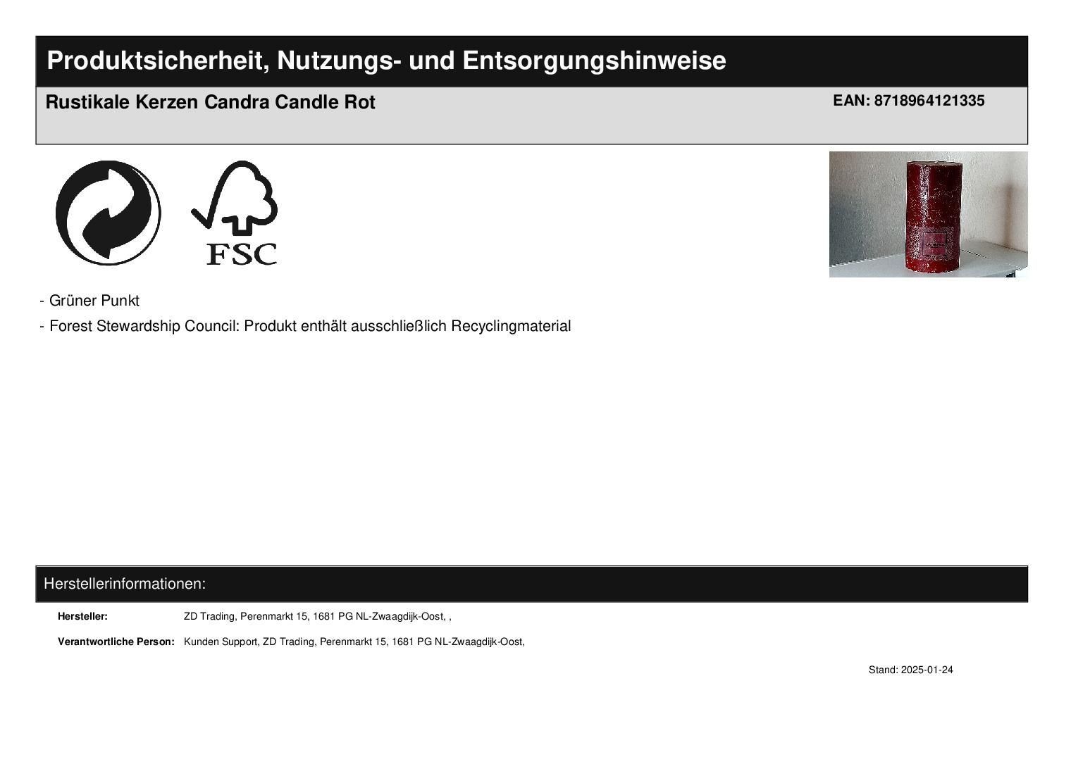 Rustikale Kerzen Candra Candle Rot