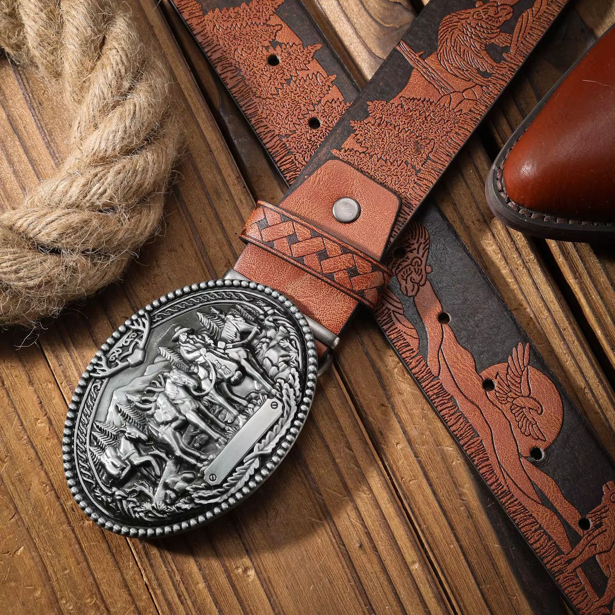 Rustikaler Western - Gürtel mit Cowboy Gürtelschnalle Wild West Buckle
