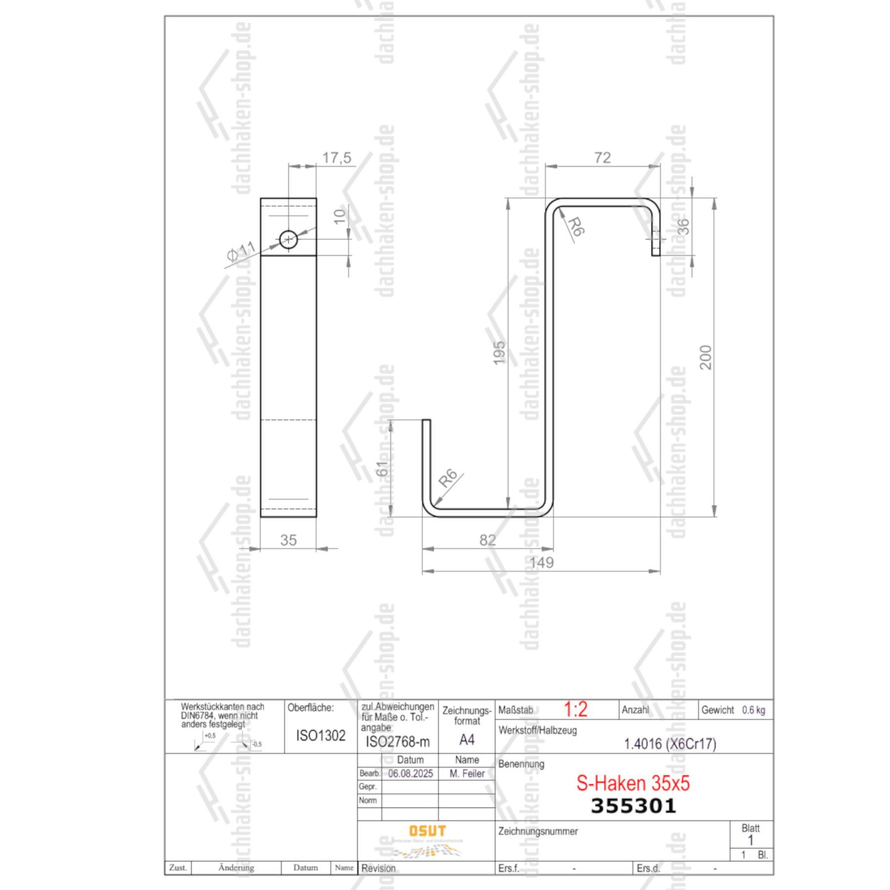 S-Dachhaken zum Einhängen für Dachlattung