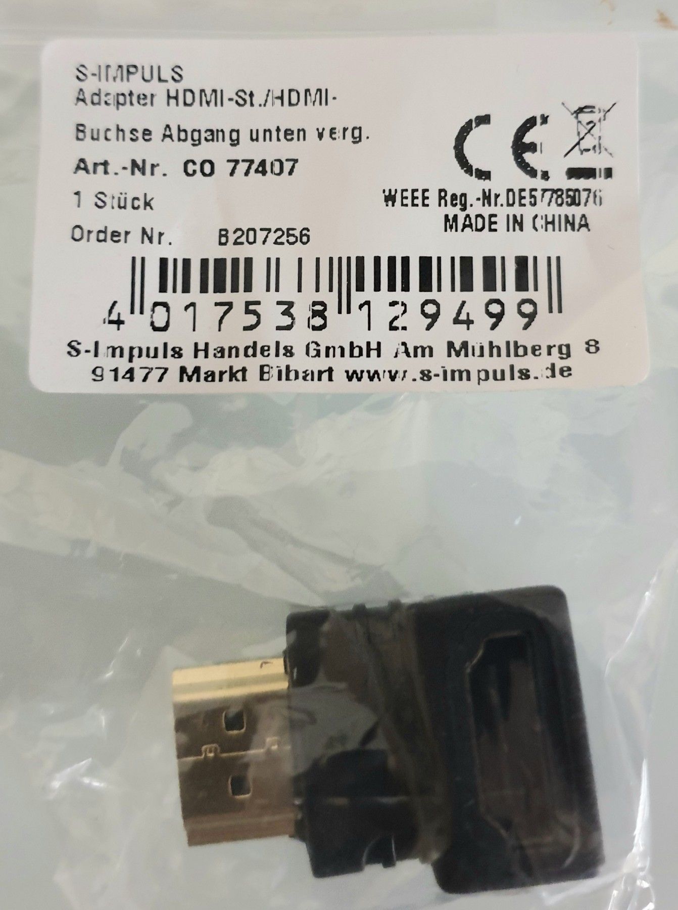 S-Impuls HDMI-Winkeladapter / Goldkontakte / 4K2K kompatibel / Abgang unten