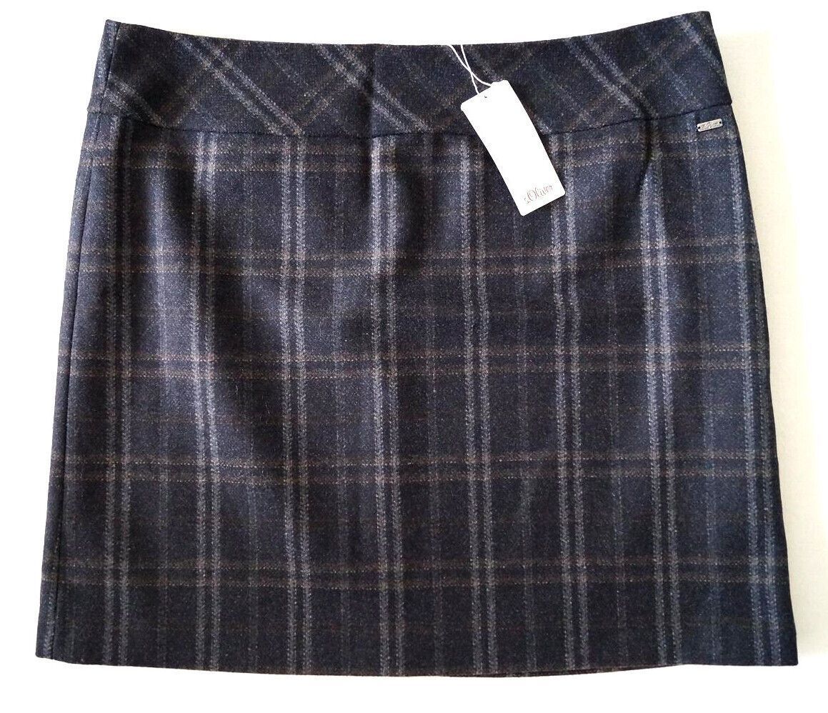 s. Oliver Damen Rock Gr. 44, 46 kariert dunkelgrau 70%Wolle 49,95 € NEU