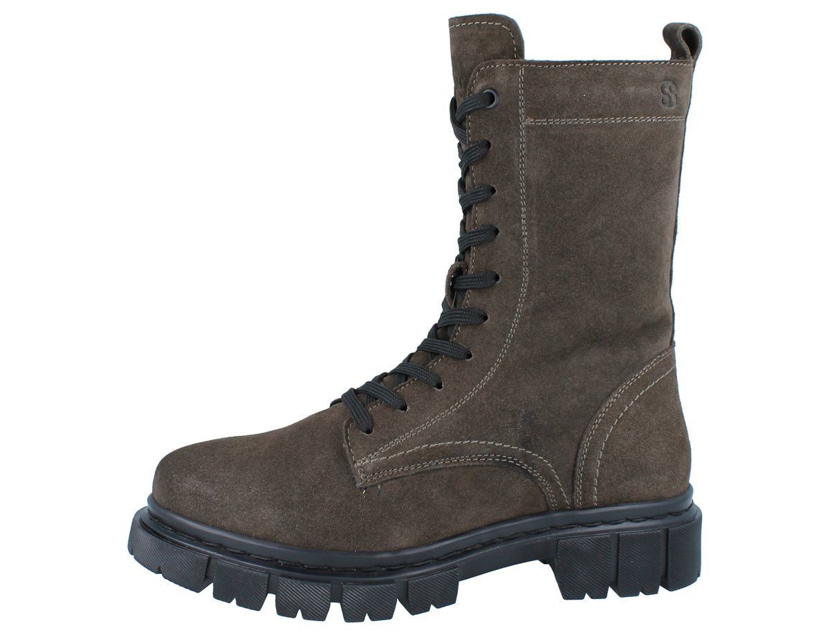 S. OLIVER Damen Stiefel Stiefelette Schnürstiefel braun Velourleder