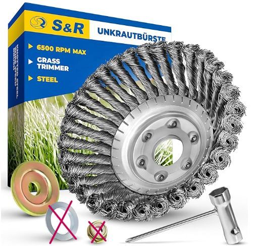S&R Unkrautbérste 200 mm Kegelbérste gezopfter Stahldraht Set