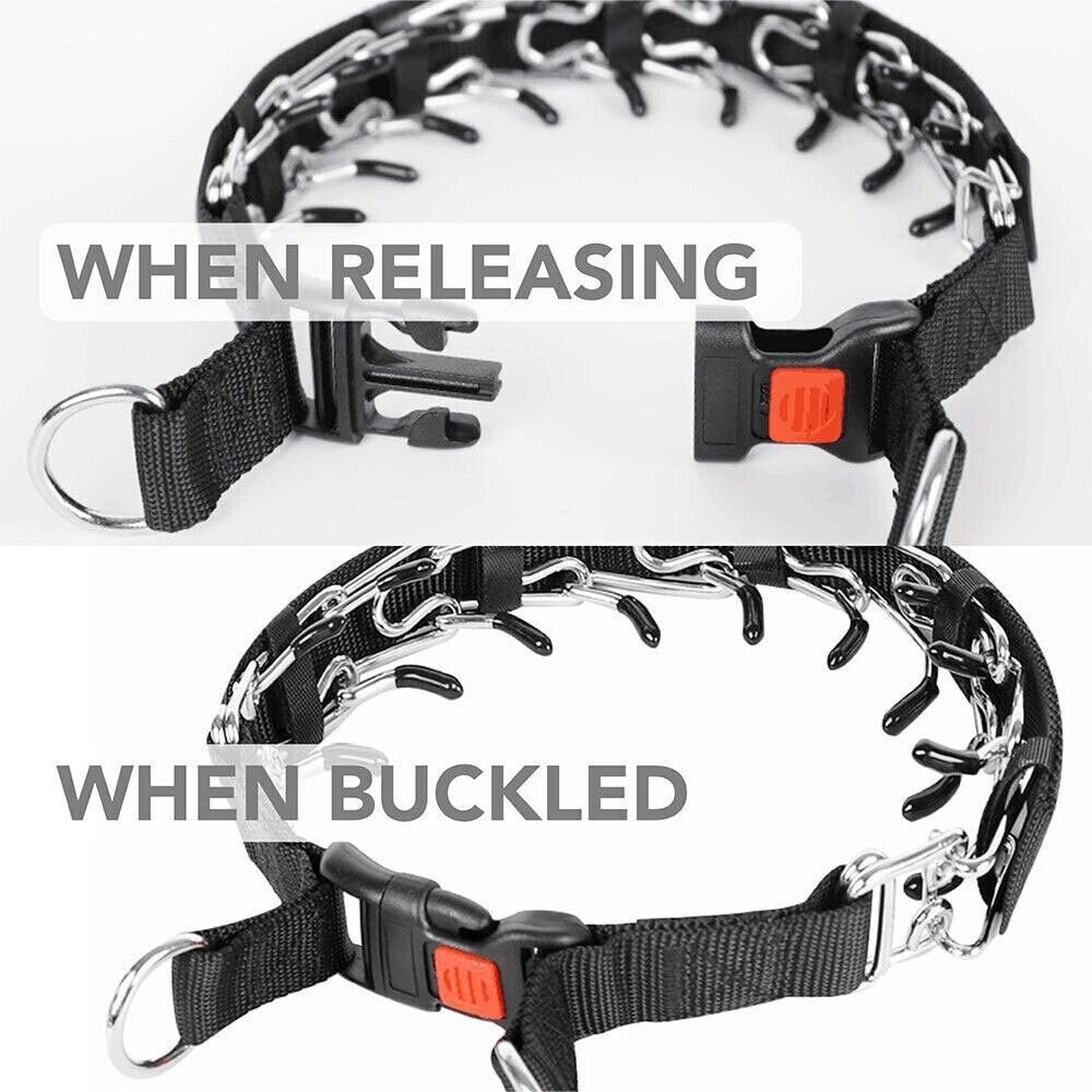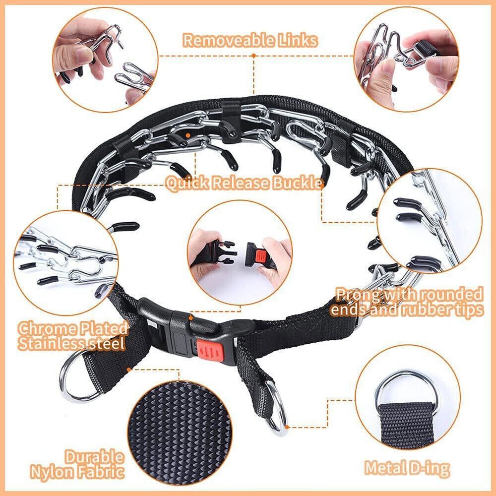 S-XL Hundehalsband Verstellbarer Training Zacken-Pinch-Kette -Nylon Mit Stahl DE