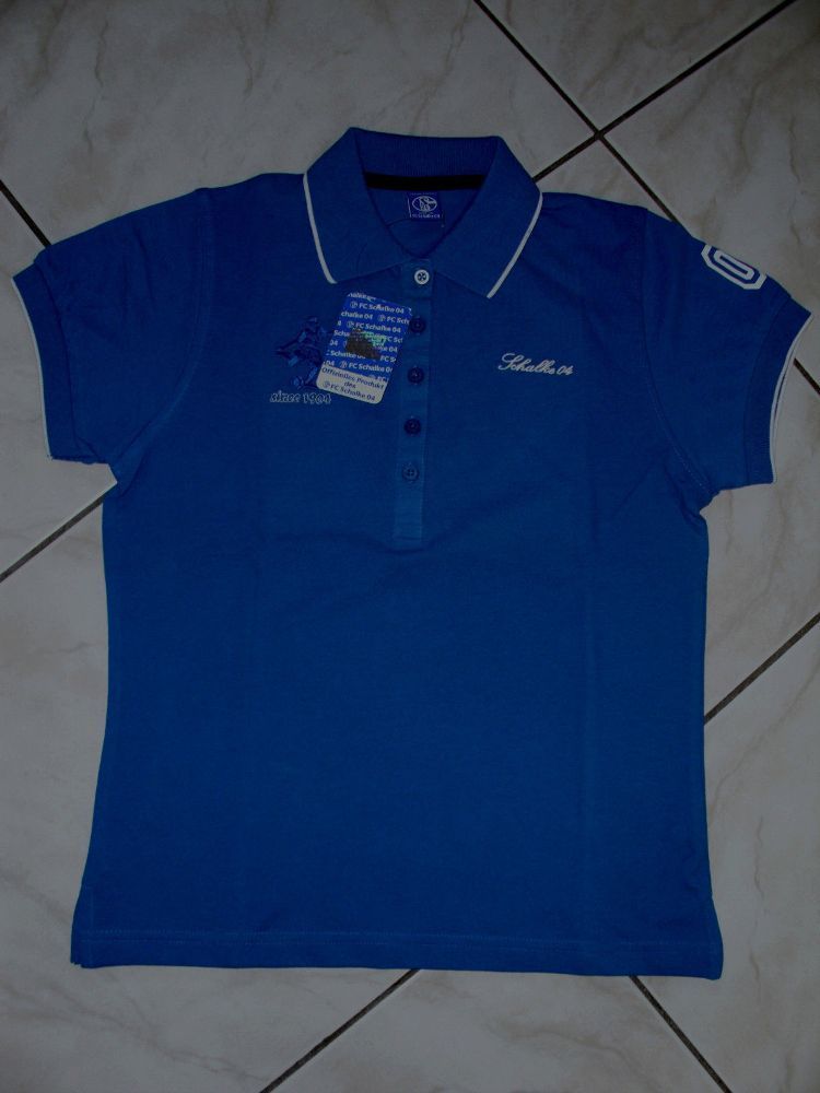 Sie kaufen hier ein wunderschönes Polo-Shirt für Damen vom FC Schalke 04! Eine wundeschönes Polo-Shirt mit Schalke 04-Schriftzug und Fußballspieler auf der Brust! Neu und ungetragen! Farbe: mittelblau 100 % Baumwolle Ein Muss für den weiblichen Schalke-Fan! Eine absolute Rarität!