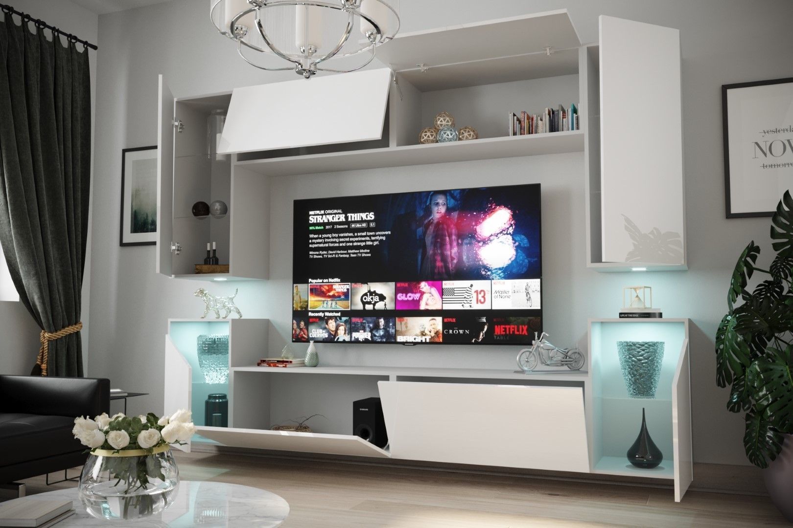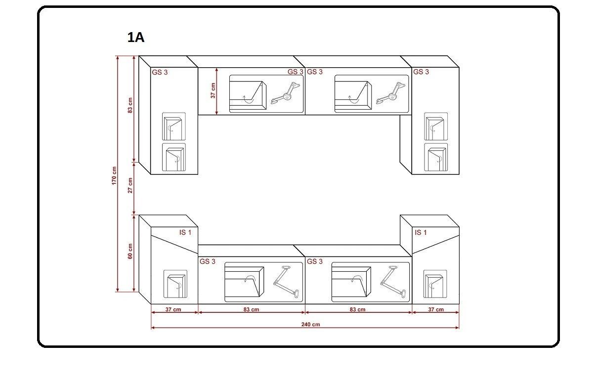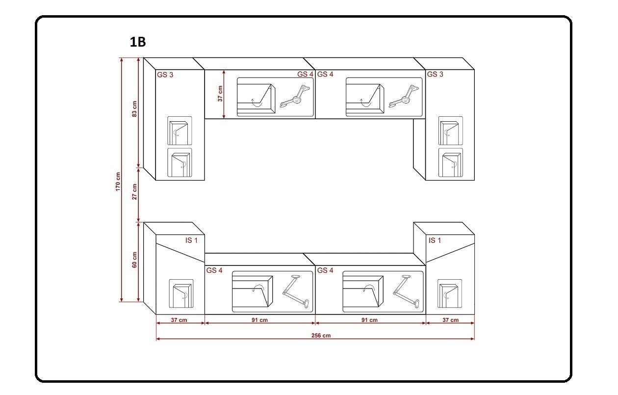 S1-HG-W-2-A (AB) Möbel für Wohnzimmer Wohnwand Mediawand Schrankwand Wohnschrank