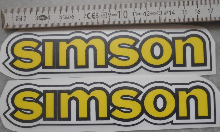8 Aufkleber Gelb-Schwarz-Weiß unter Übertragungsfolie zum einfachen anbringen Simson ca.17,3 x 3,5 cm So wie auf dem Fotos zu sehen ist der S50B kann auch als S50N verschickt werden und der Simson in der Farbvariante von Bild 3 Wichtiger Hinweis: Die von uns angegebene Markennamen stehen nicht im Zu