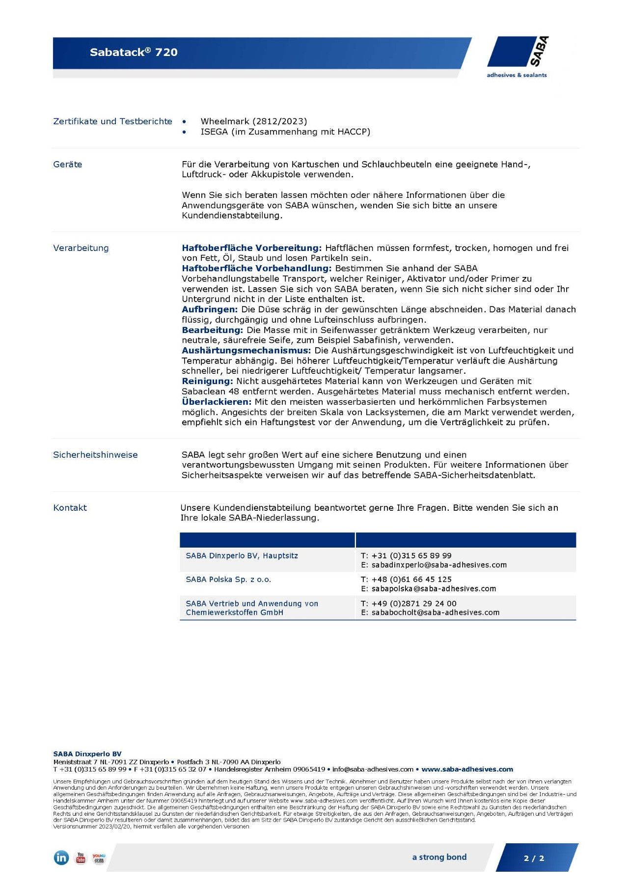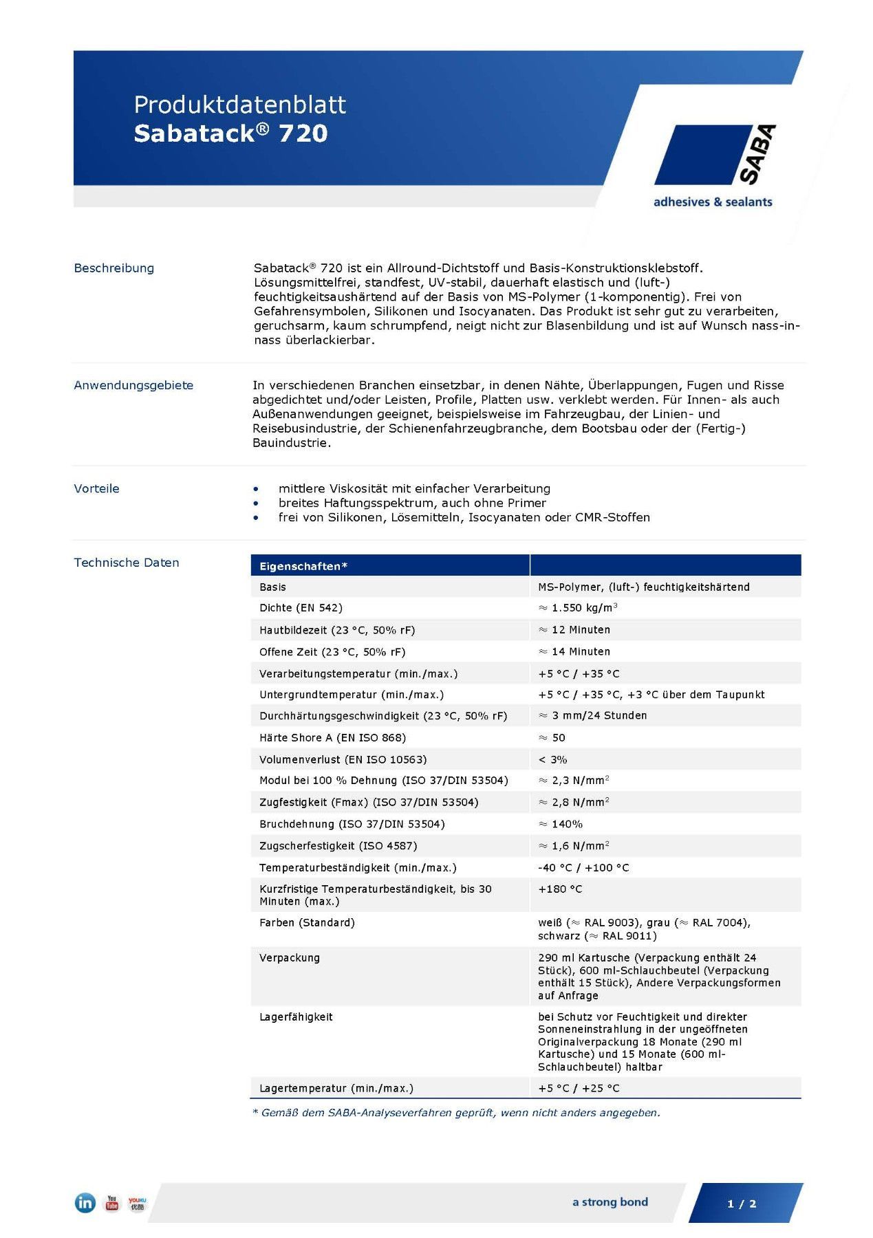 Sabatack® 720 MS Polymer Kleber Bau-, Montagekleber Beutel weiß, grau o. schwarz