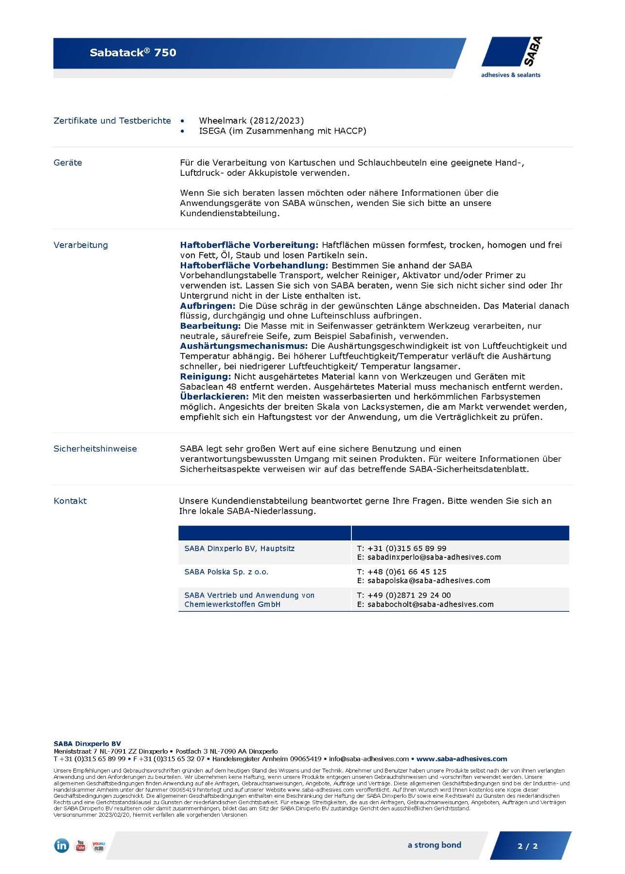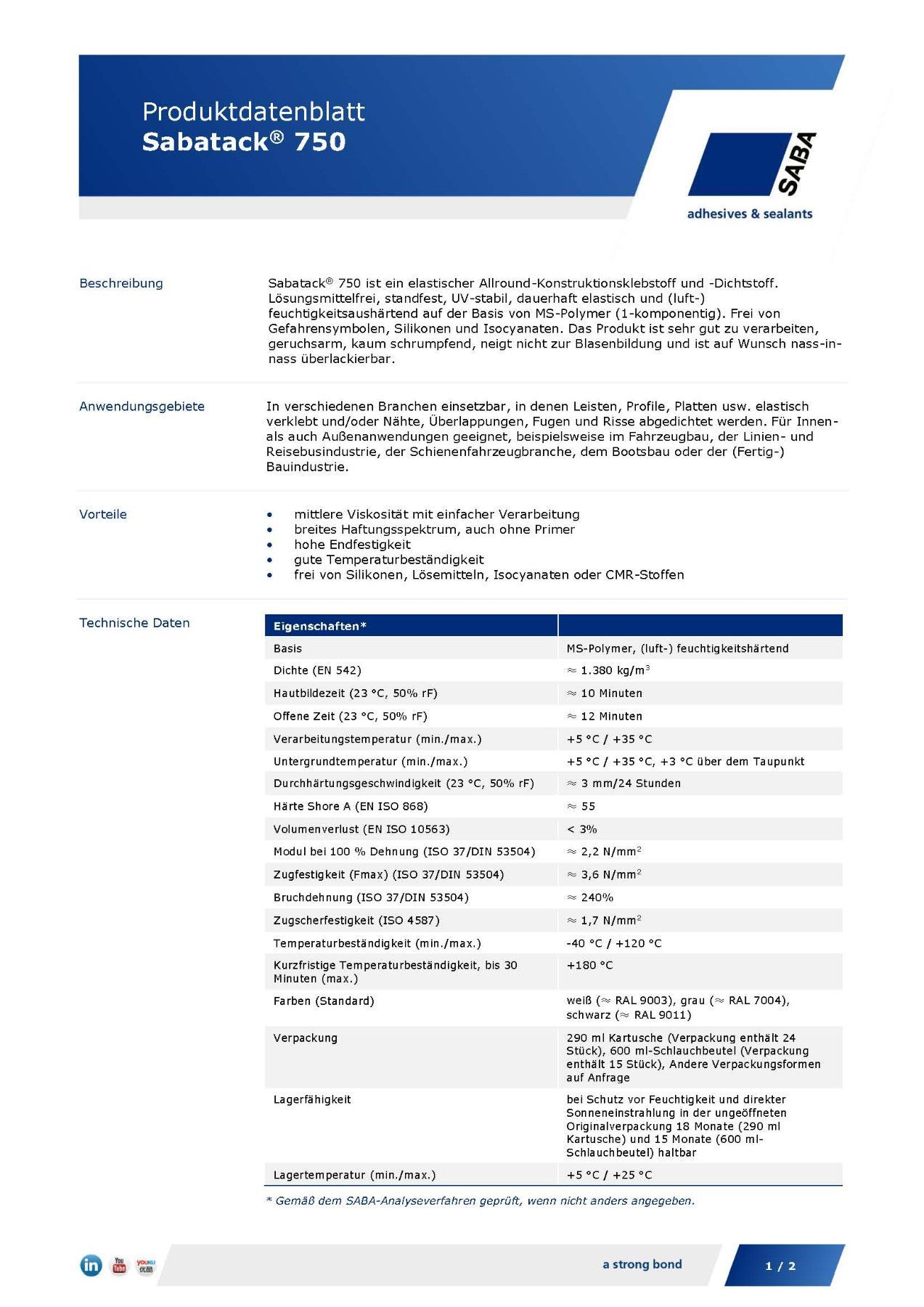 Sabatack® 750 MS Polymer Kleber Bau-, Montagekleber Beutel weiß, grau o. schwarz