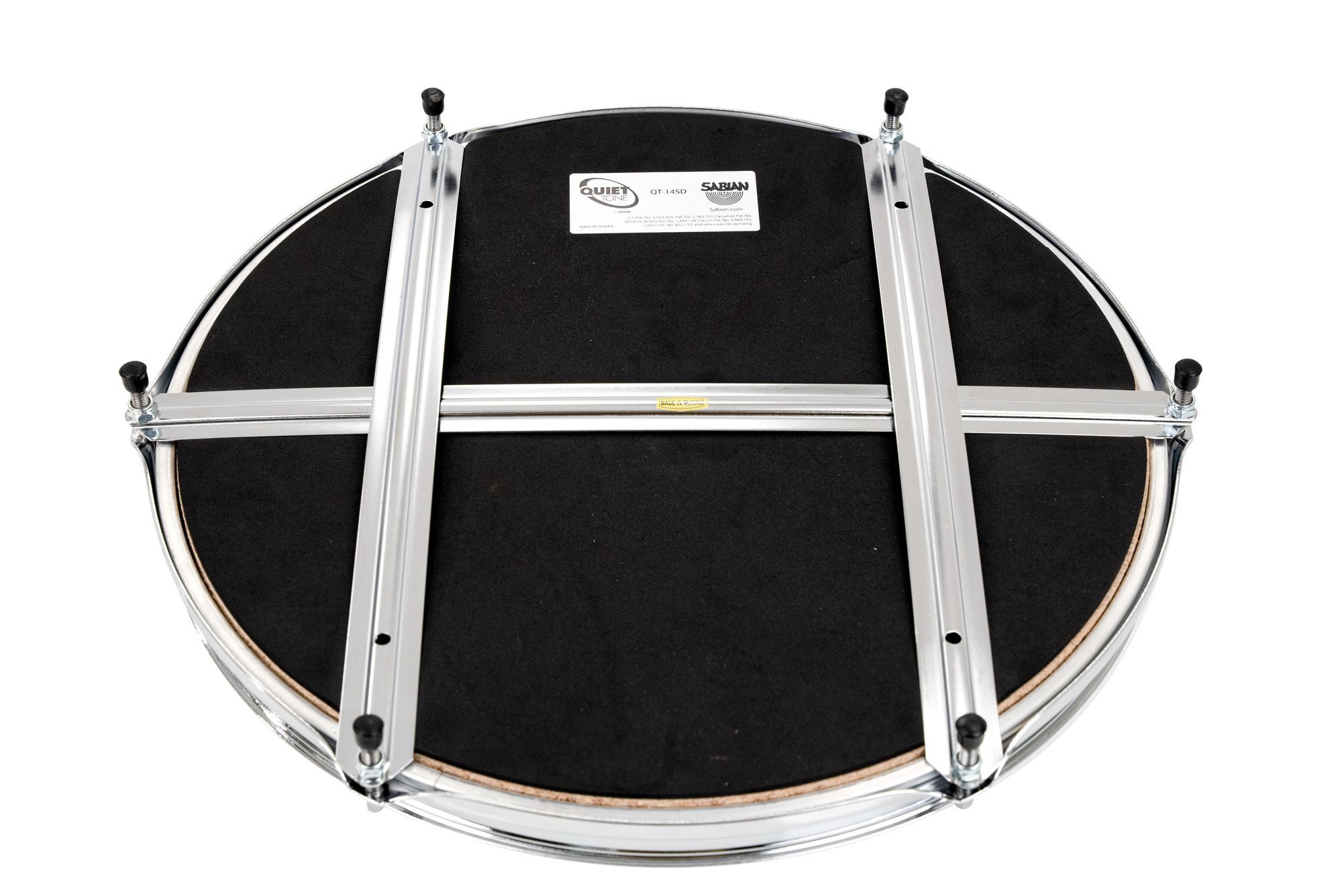 Sabian QT14SD Quiet Tone Pad Das Practice Pad QT14SD von Sabian ermöglicht extrem authentisches üben durch ein stimmbares Coated Fell. Mithilfe der angeschraubten Gummifüße kann das Pad auf jeder ebenen Oberfläche positioniert werden. Dank der Größe von 14' hat der Spieler ebenfalls die Möglichkeit,