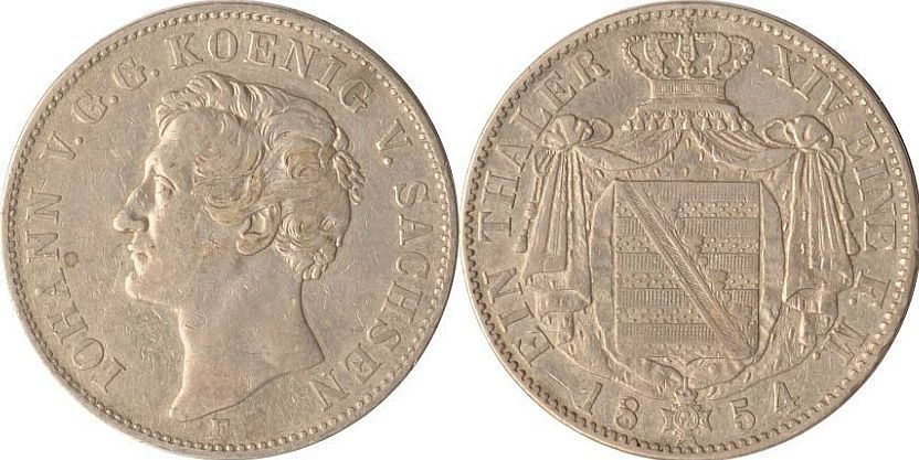 Sachsen 1 Taler1854 F "König JOHANN" (1854-1873)) ss