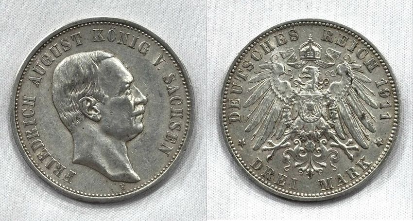 Sachsen 3 Mark 1911 E König Friedrich August III.(1904-1918)), J. 135