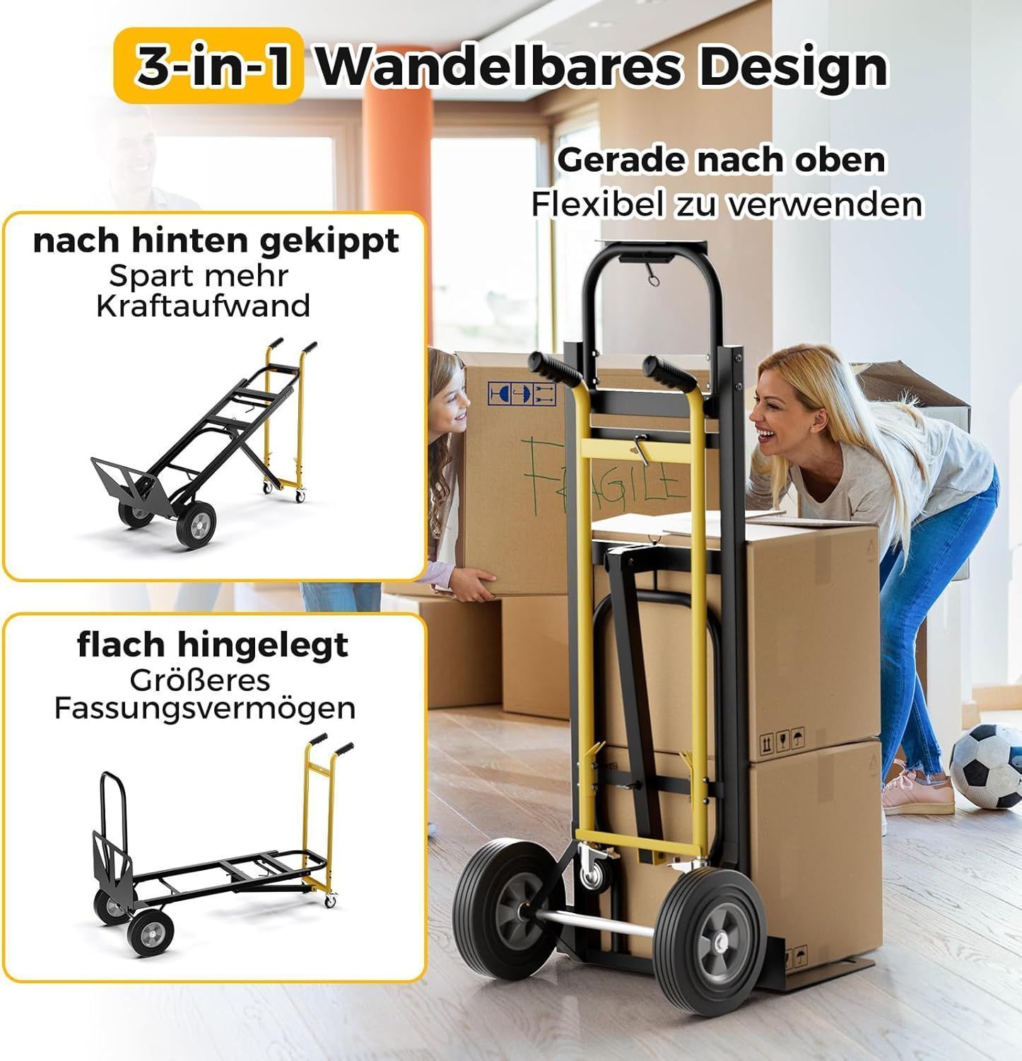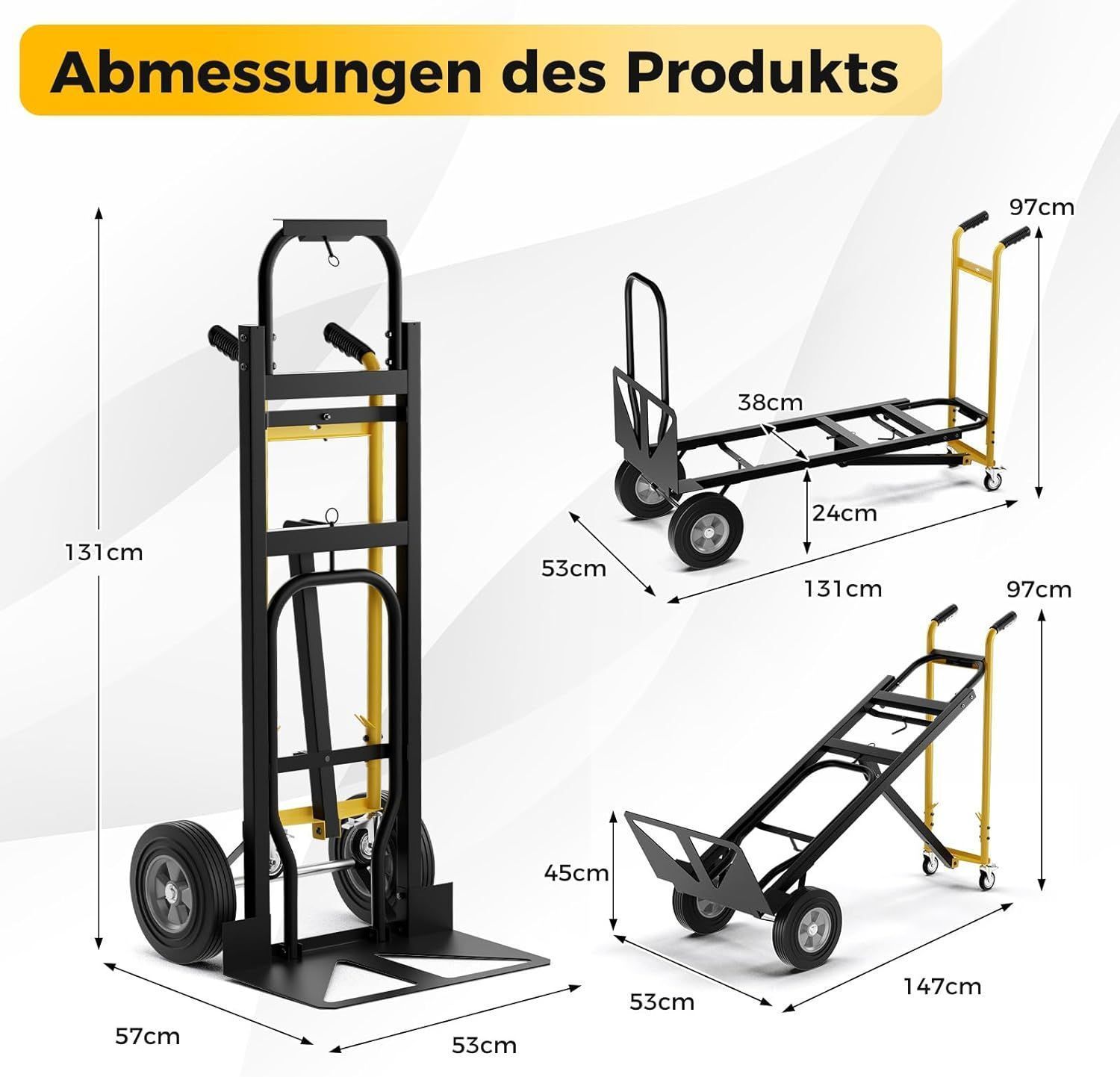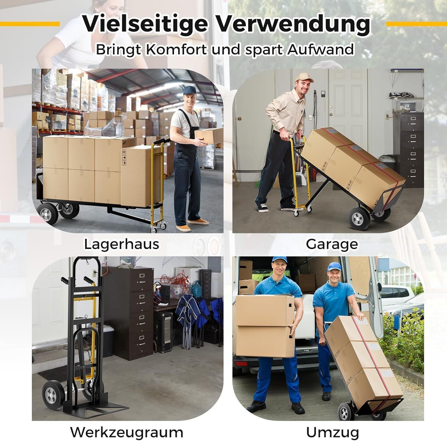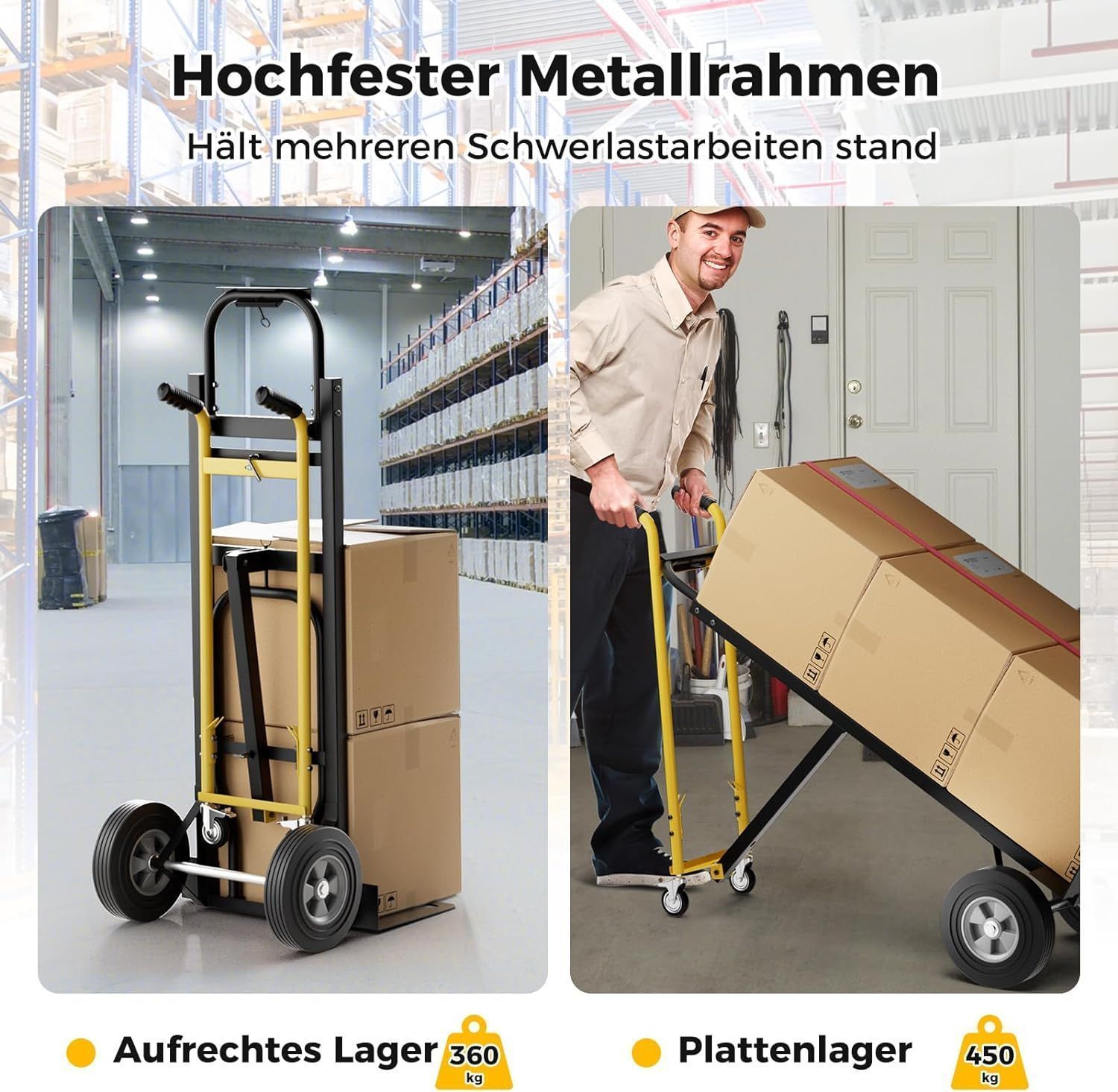 Sackkarre, Handkarre 3 in 1 wandelbar, Transportkarre bis zu 360KG / 450KG belastbar