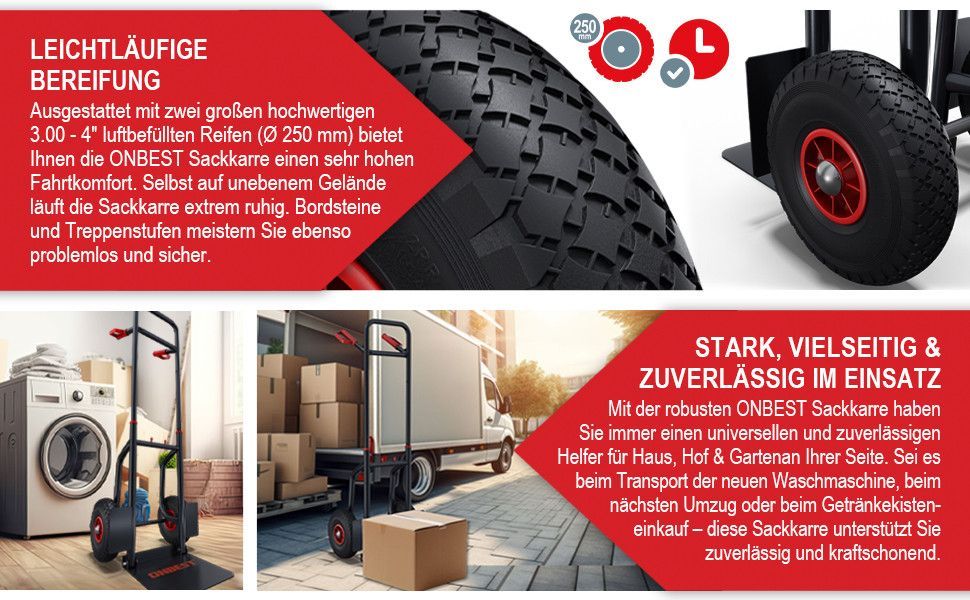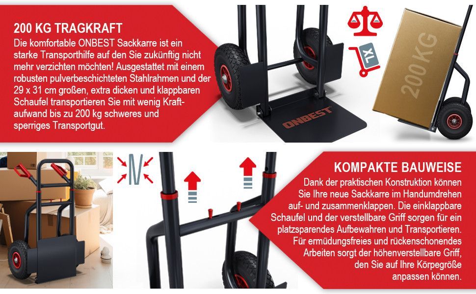 Sackkarre klappbar 200kg Tragkraft luftbefüllte Reifen Lastenkarre Transportkarre