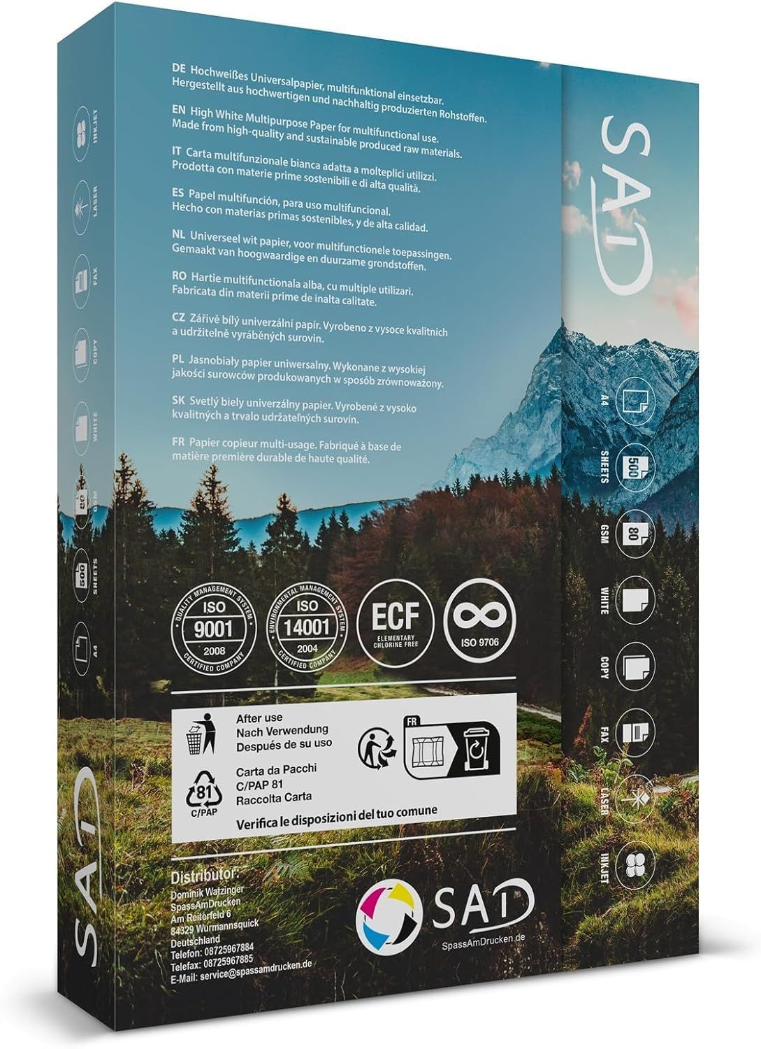 SAD 2500 Blatt Druckerpapier 80g/m² A4 hochweiß CIE 161 Premium Kopierpapier Papier
