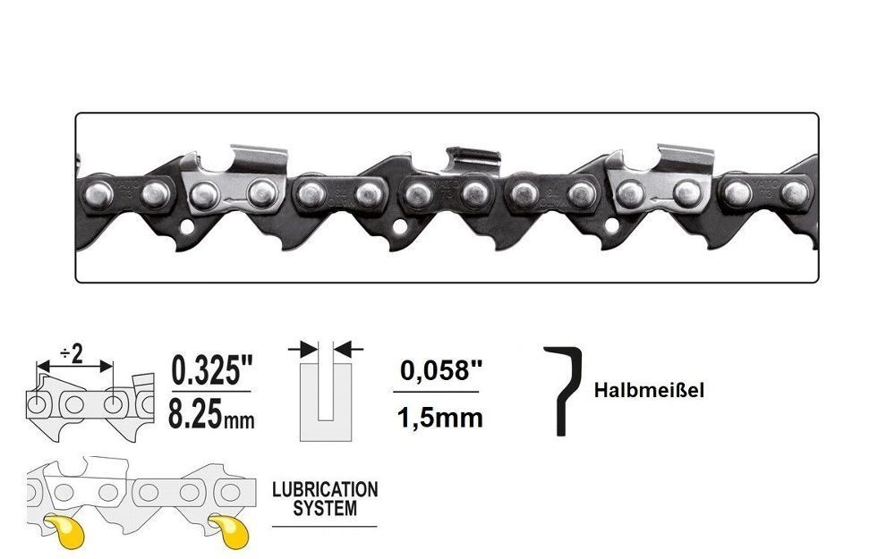 Yato Sägekette 0.325" x 1,5 x 30 - 75 TG , Halbmeißel , Sägeketten, Kettensäge
