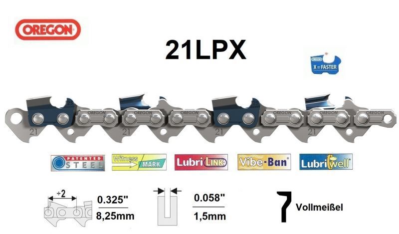 Sägekette 0.325" x 1,5 x 35 - 80 TG , Vollmeißel , Oregon-21LPX