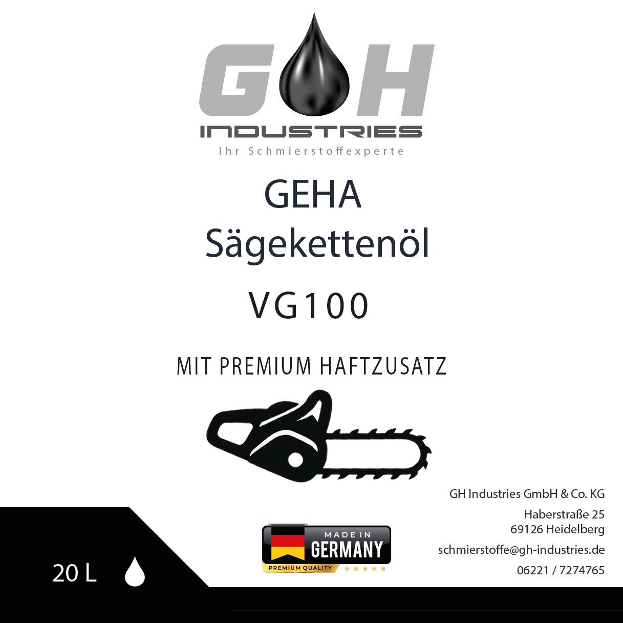 Sägekettenöl VG100 | mit Haftzusatz | 20L | Kettenöl | Motorsäge | Haftöl | GEHA