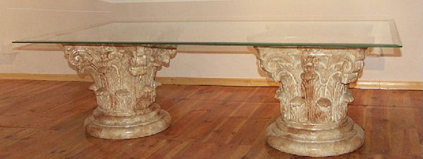 Säulen Tisch mit Glasplatte lebensgroß 90cm für innen aus Polyresin