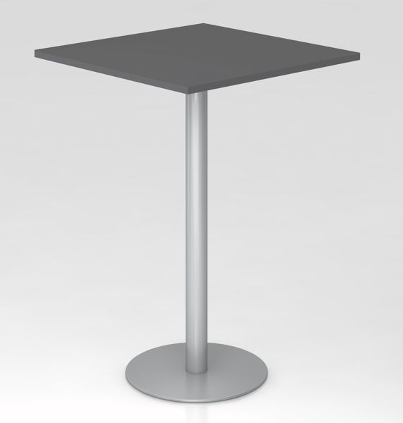 Stehtisch 80 x 80 cm, Dekor Tischplatte wählbar, Säule silberfarben, Höhe 111,6 cm