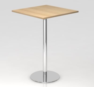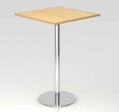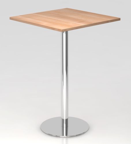 Stehtisch 80 x 80 cm, Höhe 111,6 cm. Säulenfuß verchromt, Dekor Tischplatte wählbar.