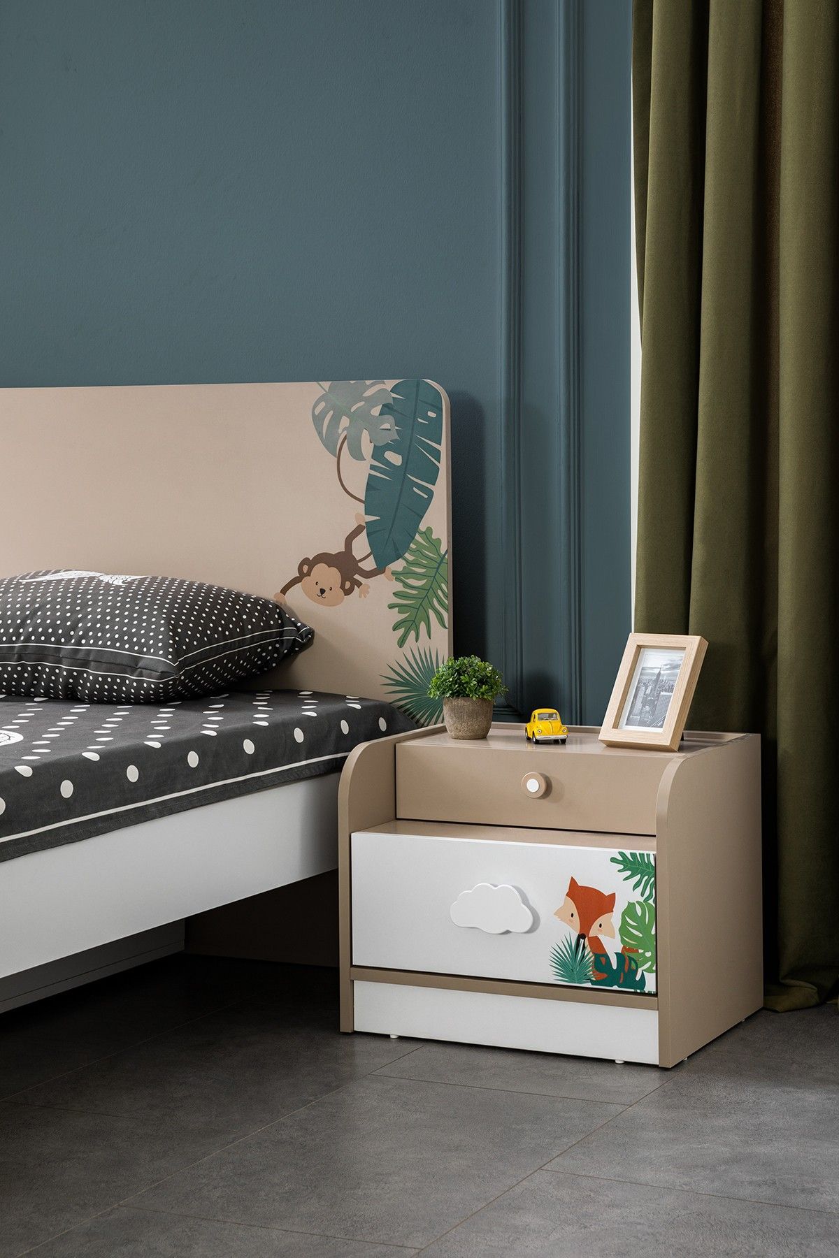 Safari Nachtkonsole für Kinder in Weiß / Braun