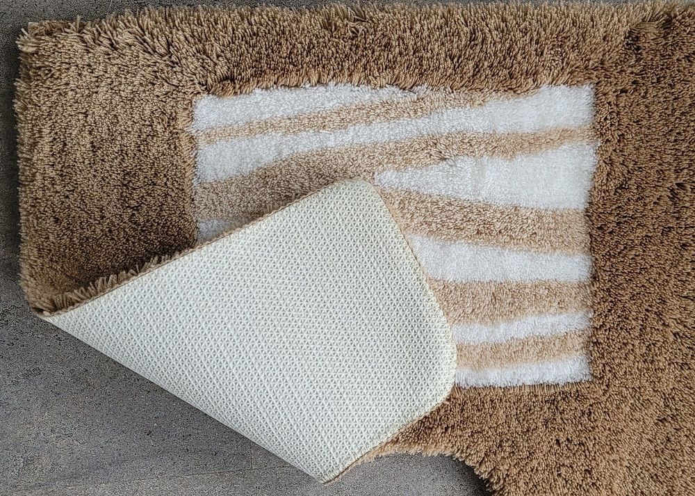 Safari Taupe-Beige WC-Vorleger mit Ausschnitt 55x50cm. Florhöhe: Hoch-Tief-Effekt