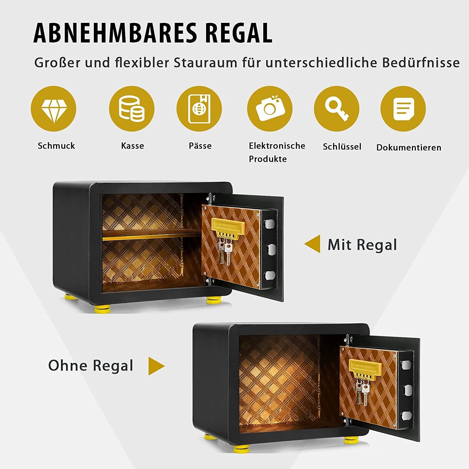 Safe Tresor mit digitaler Tastatur, inkl. 2 Notfallschlüssel, mit abnehmbares Regal