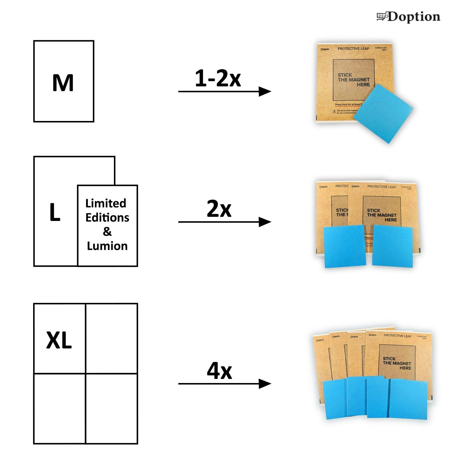 Safe Wall Mounting System von Displate. Neue originale Displate Wandhalterungen. Erklärung der Auswahlmöglichkeiten (Varianten): Komplette Sets haben am Anfang eine Zahl von 1 bis 9 für die Anzahl an Sets und heißen immer „Magnet systems , z. B. 2 Magnet systems (Lieferumfang: 2 komplette Sets). Wie
