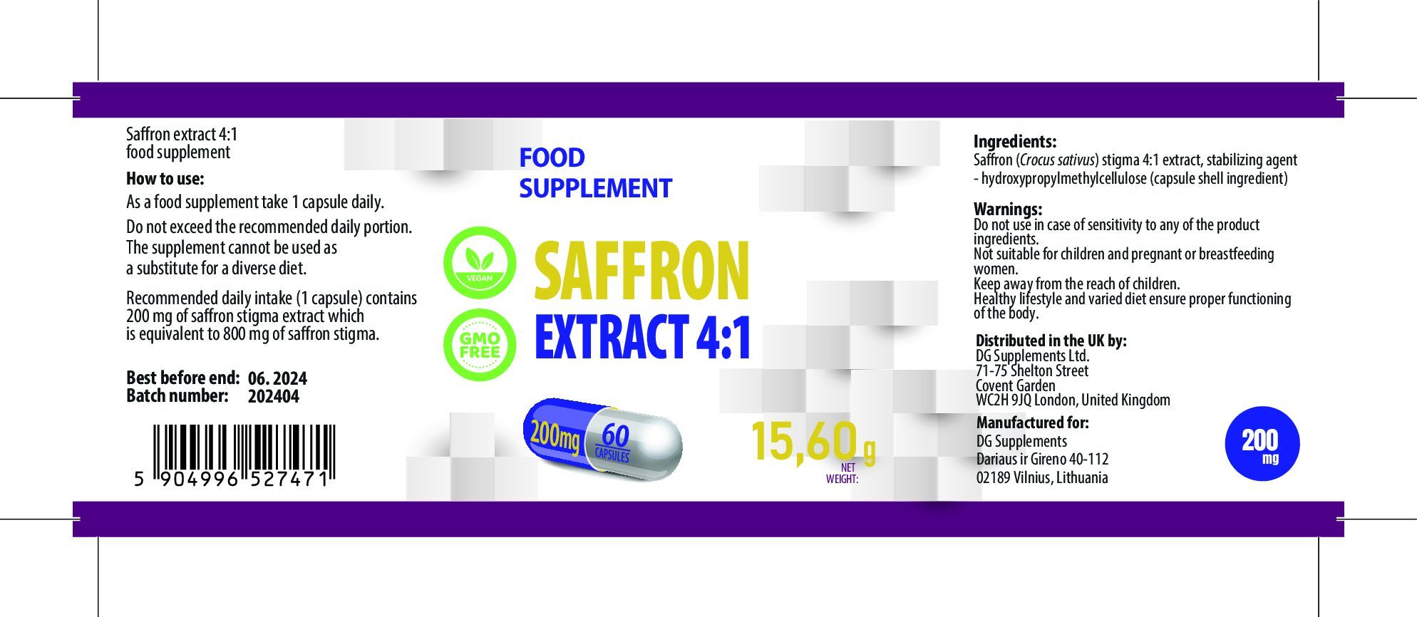 Safran 800mg Äquivalent (200mg 4:1 Extrakt) 60 vegane Kapseln