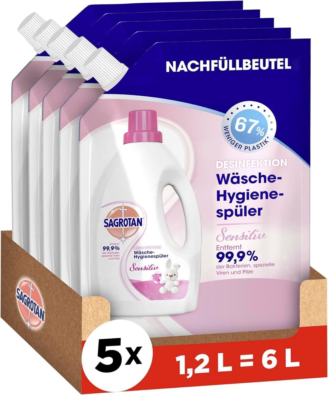 Sagrotan Wäsche-Hygienespéler Sensitiv Nachféller Desinfektionsspéler 5 x 1,2 l