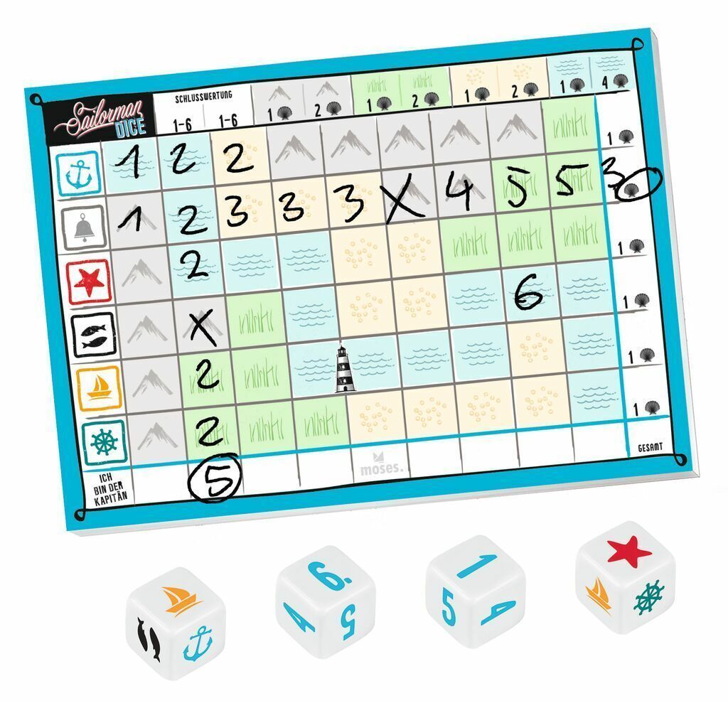 Sailorman Dice Moses Familienspiel Würfelspiel Strategiespiel Roll & Write Spiel