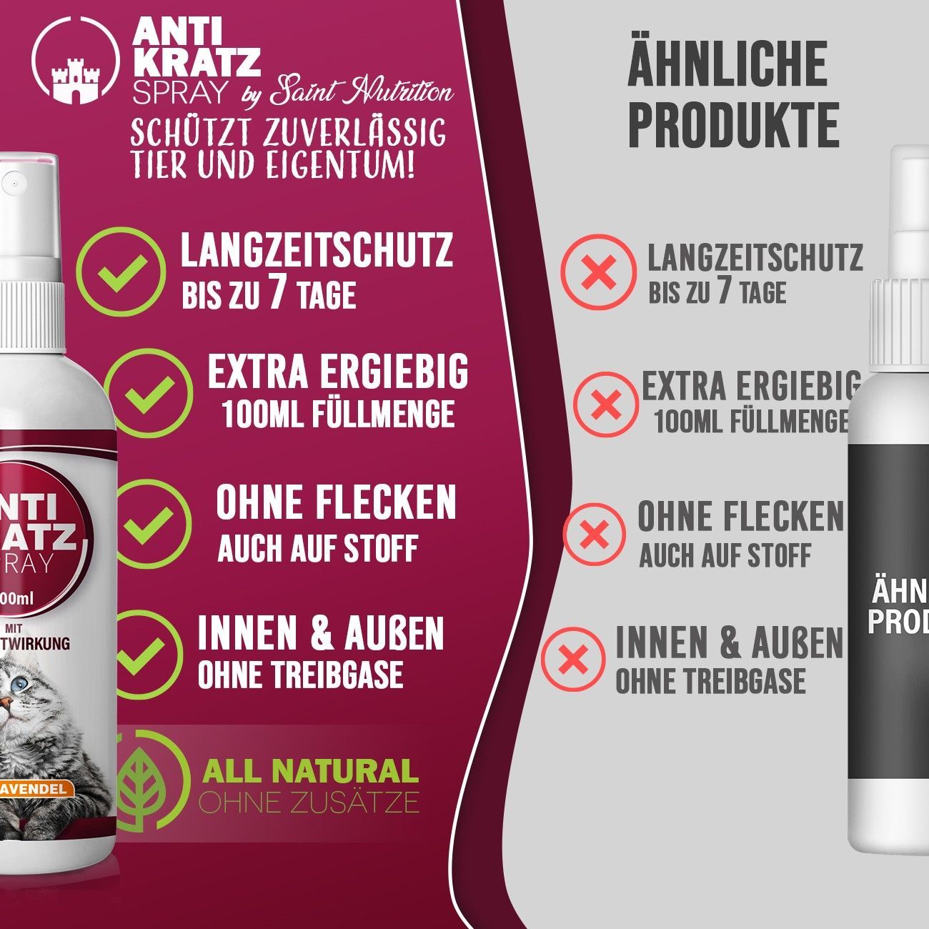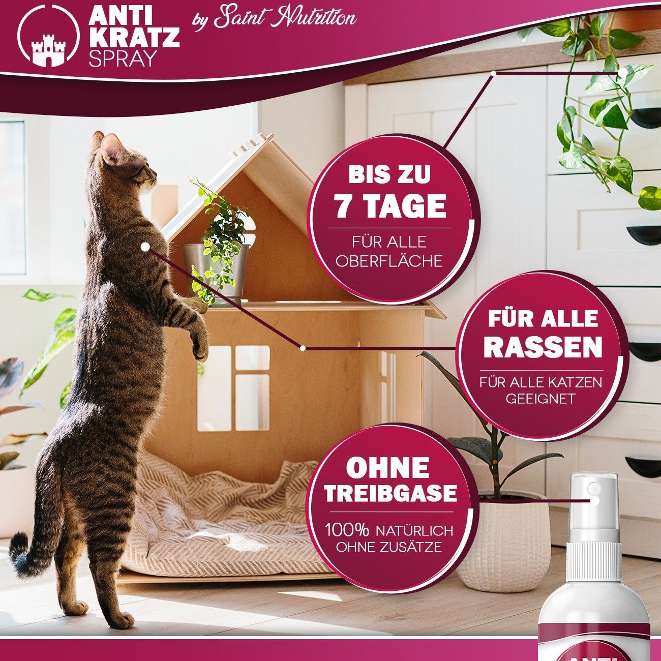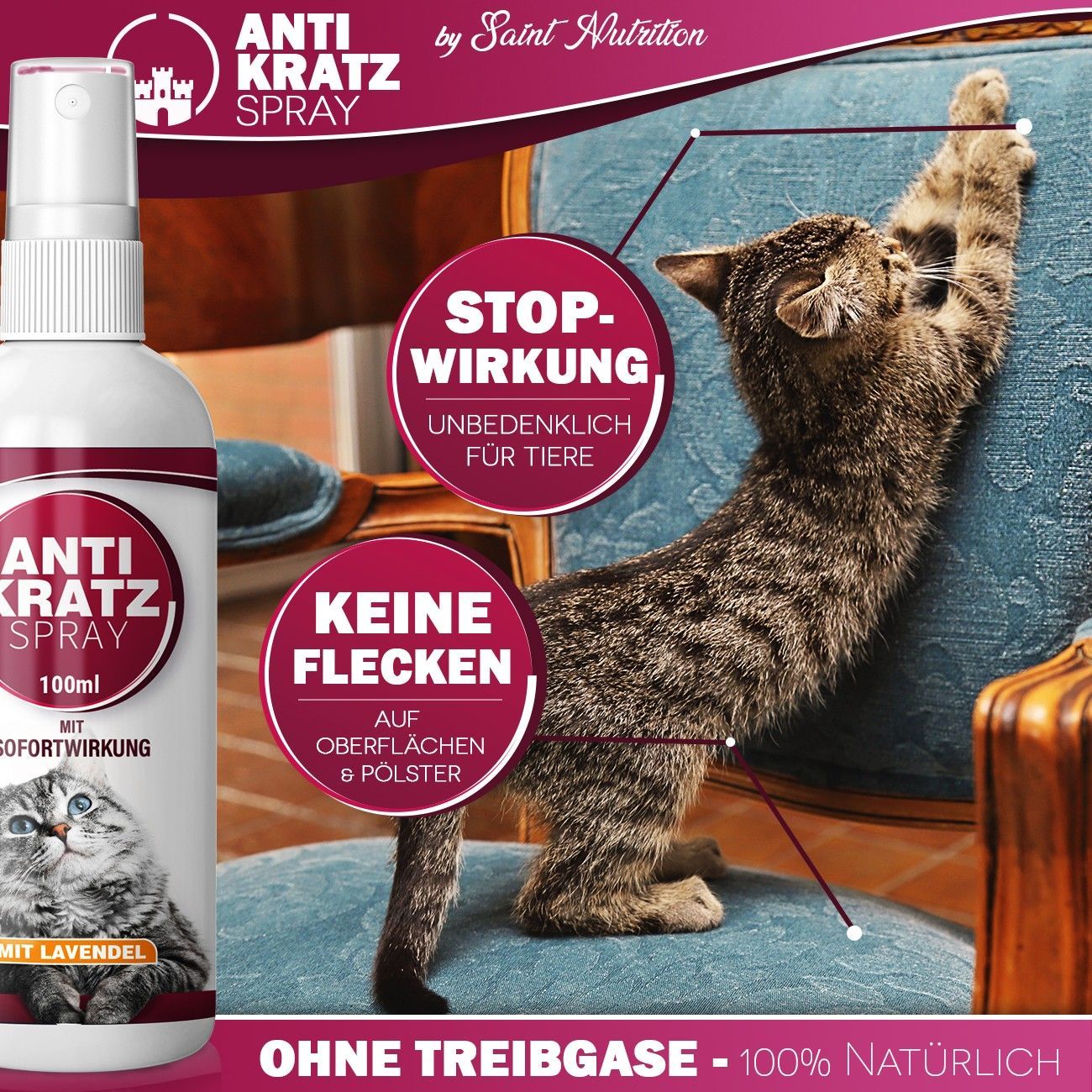 Saint Nutrition® Anti Kratz Spray | Fernhaltespray Katze - Abwehrspray