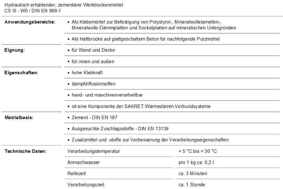 Sakret Sakret BK Baukleber (25 kg) Haftbrücke Mörtel Dämmplattenkleber Profi