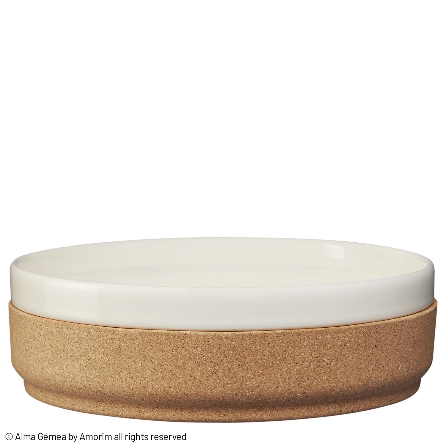 Salatschüssel perlweiß Keramik mit Kork