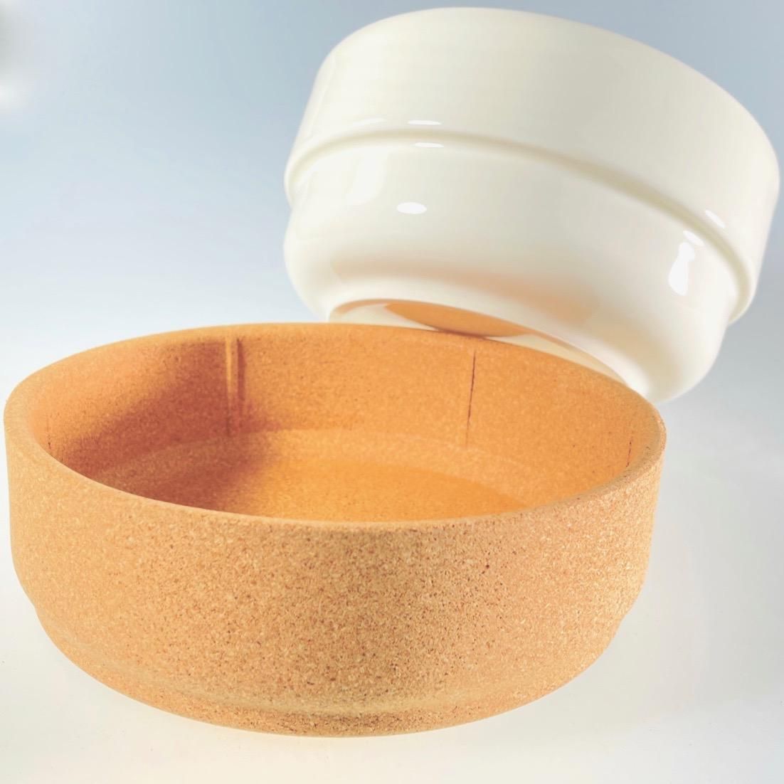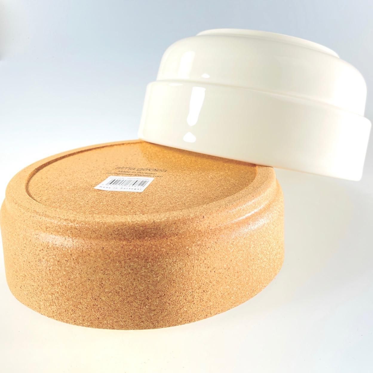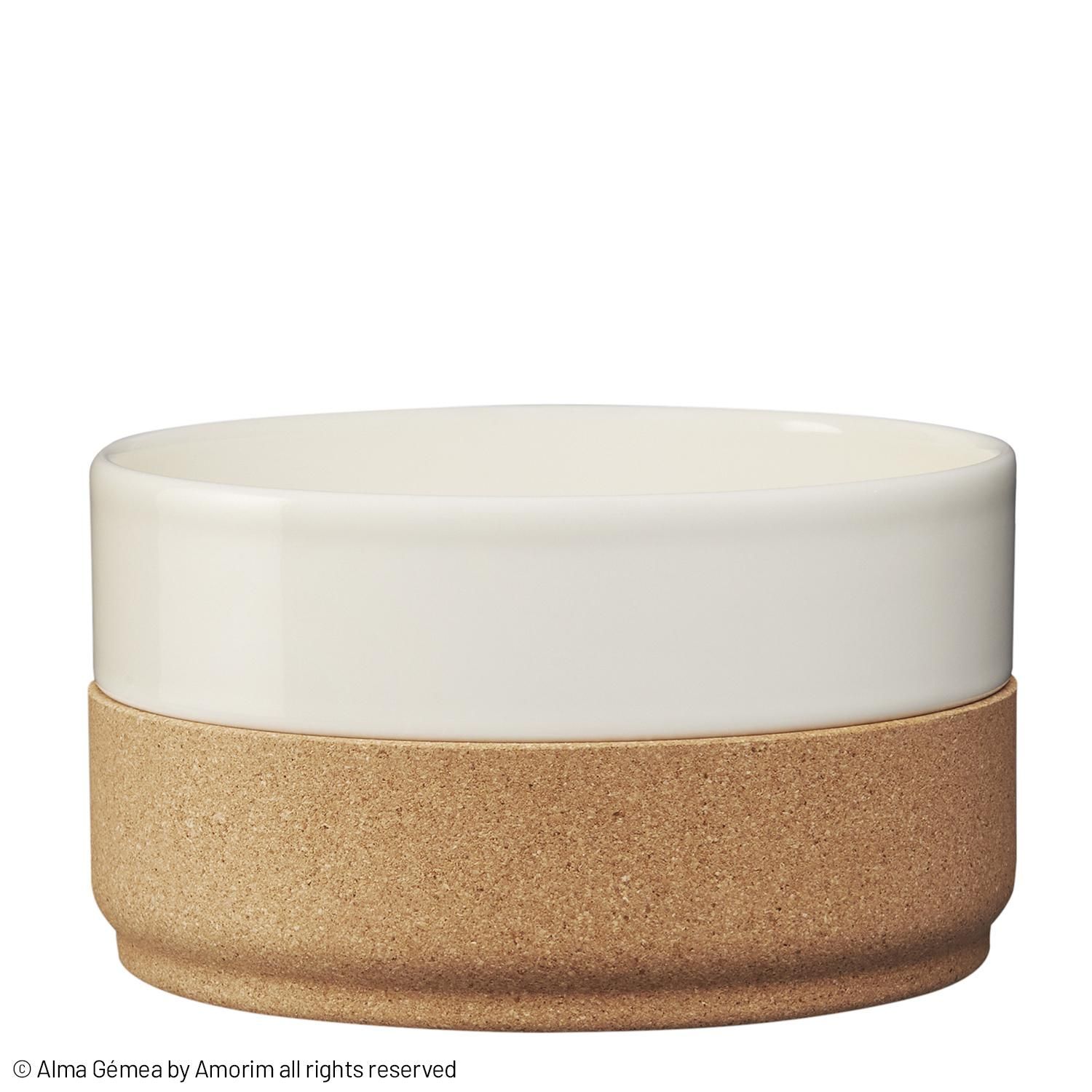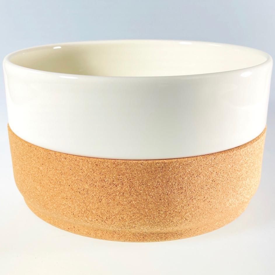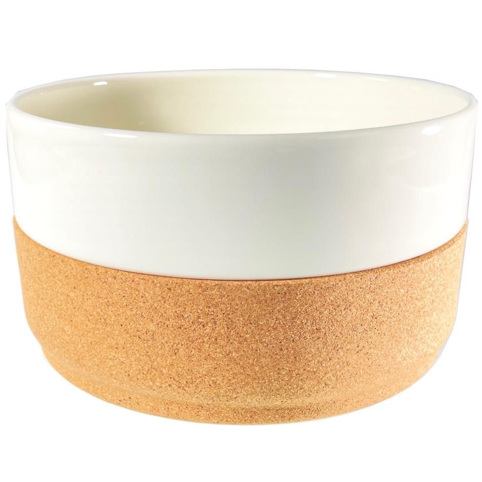 Salatschüssel perlweiß Keramik mit Kork 18 x 10cm