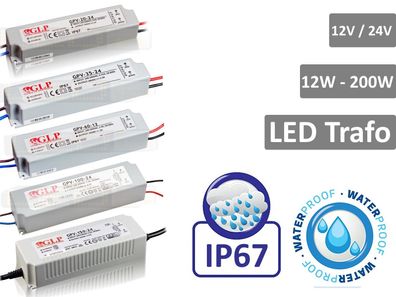 • LED Trafo 12W - 200W 12V 24V Netzteil IP67 Wasserdicht Transformator Treiber