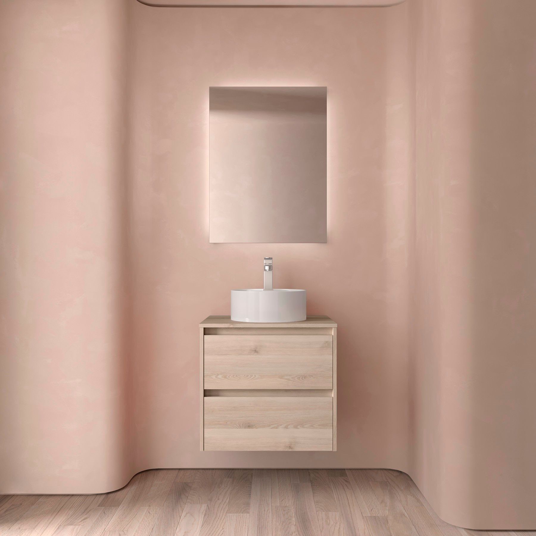 Salgar Badezimmermöbel NOJA 600 2 Schubladen Natural + Waschtisch-Platte