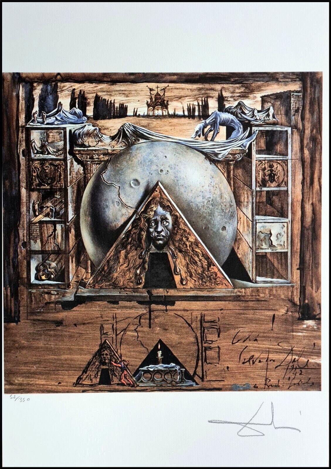 Lithographie Julias Grabmal Gedruckt auf 300 Gramm schweren cremefarben Leinenpapier Das Blatt ist signiert und mit der Hand nummeriert und im Papier gestempelt - nicht von Dali persönlich signiert, dient nur der Kennzeichnung Limitierte Auflage von 350 Stück Jedes Stück ist einzeln nummeriert 52 35