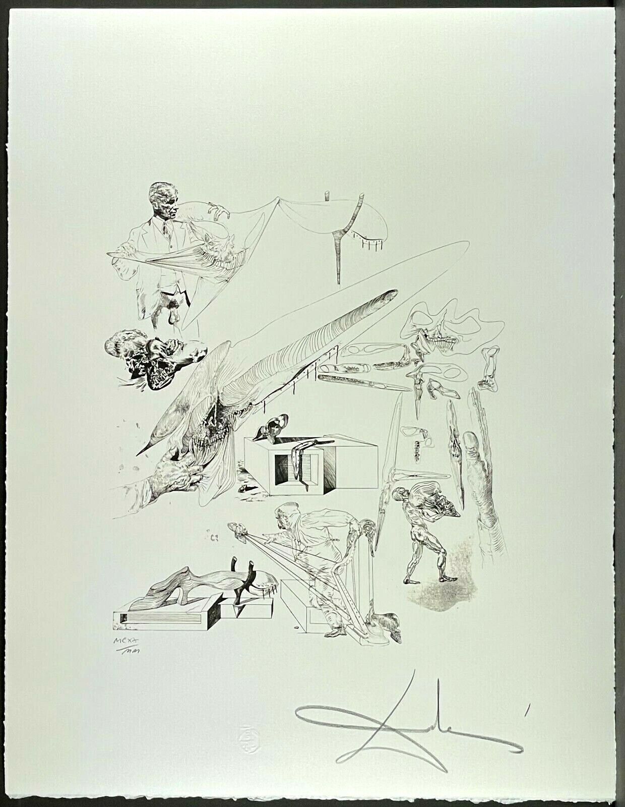 Lithographie Weicher Schädel und Schädelharfe Von Atelier Jobin Paris, auf handgeschöpftem Papier Das Blatt ist signiert und mit der Hand nummeriert und im Papier gestempelt - nicht von Dali persönlich signiert, dient nur der Kennzeichnung Limitierte Auflage von 2000 Stück Jedes Lithographie ist ein
