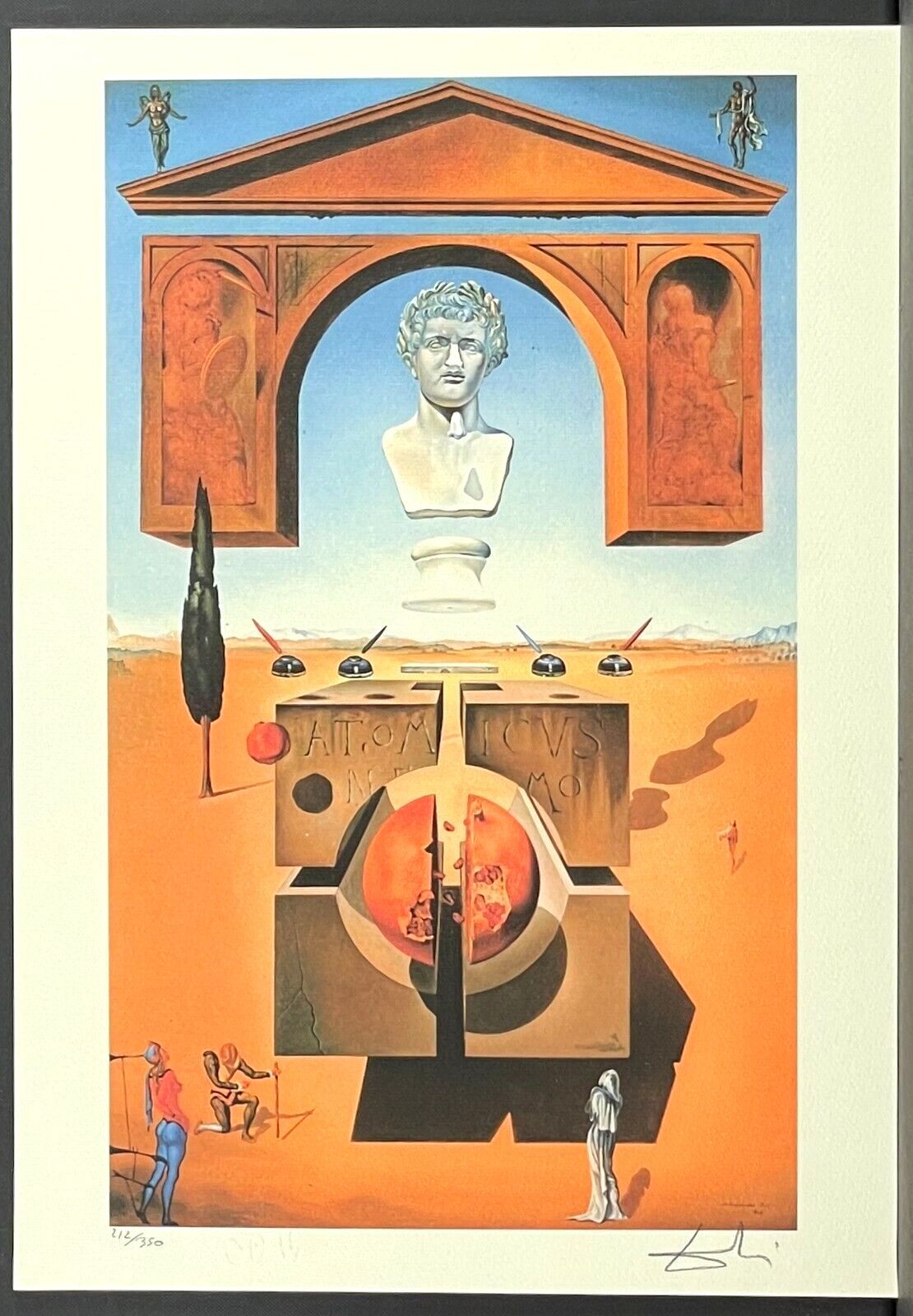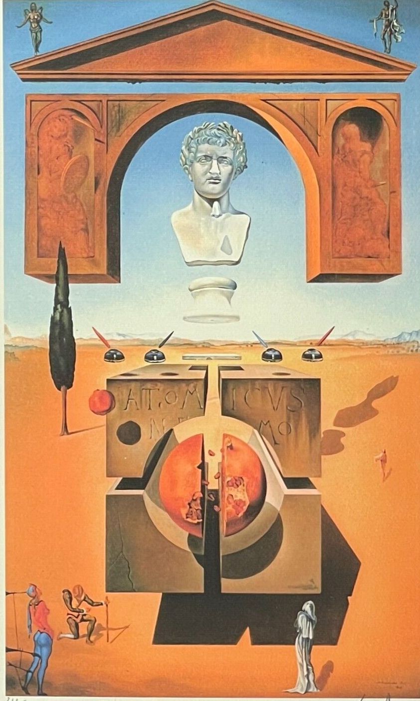 Lithographie Die Spaltung des Atoms Gedruckt auf 300 Gramm schweren cremefarben Leinenpapier Das Blatt ist signiert und mit der Hand nummeriert und im Papier gestempelt - nicht von Dali persönlich signiert, dient nur der Kennzeichnung Limitierte Auflage von 350 Stück Jedes Stück ist einzeln nummerie