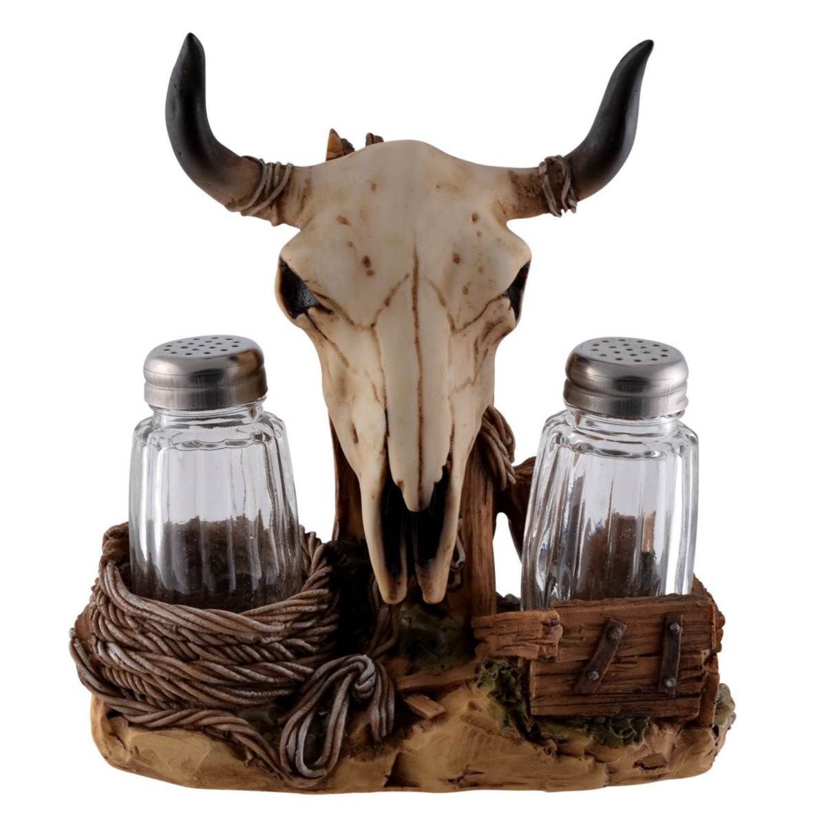 Salz und Pfefferset Bullenschädel bunt, Glasstreuer mit Metallkappe
