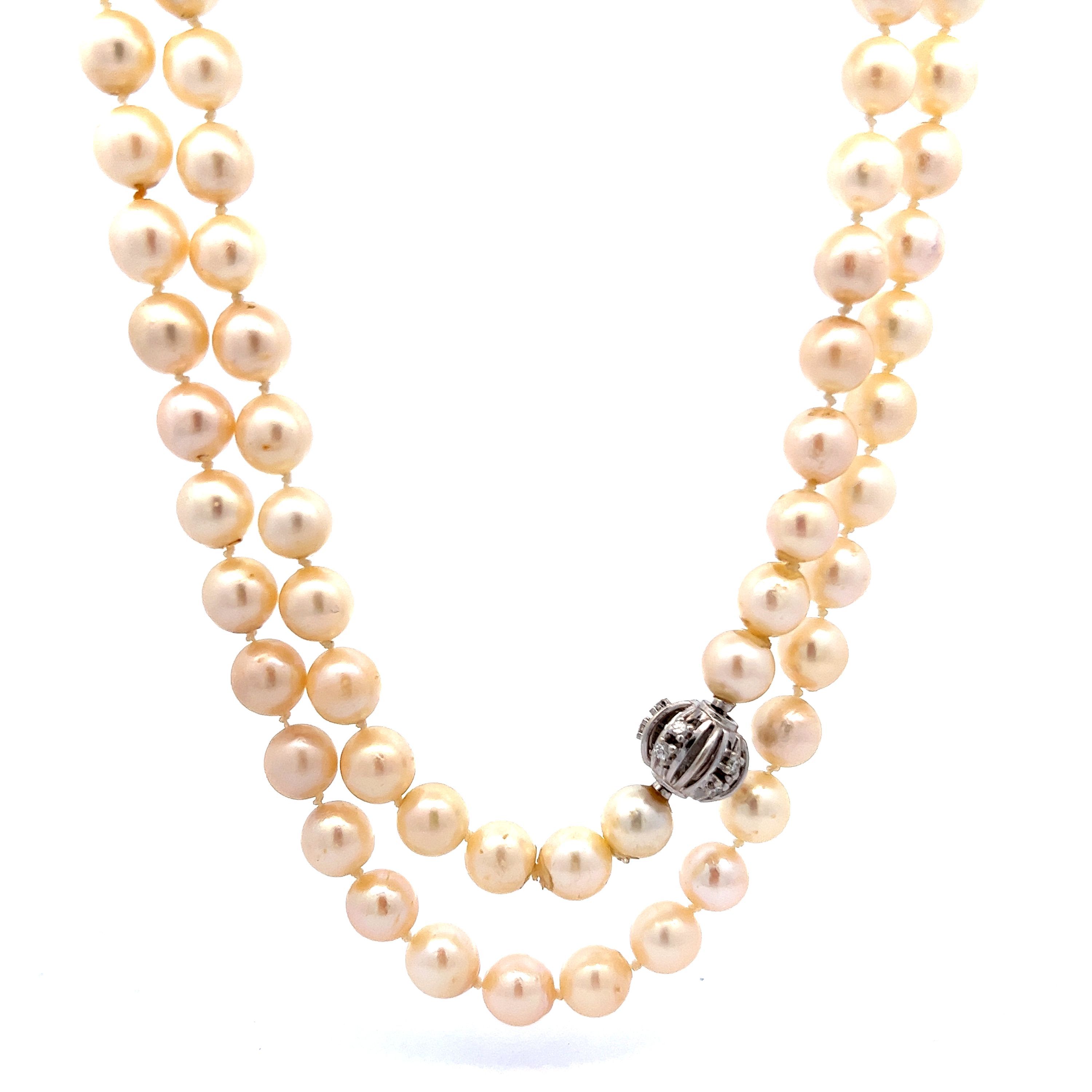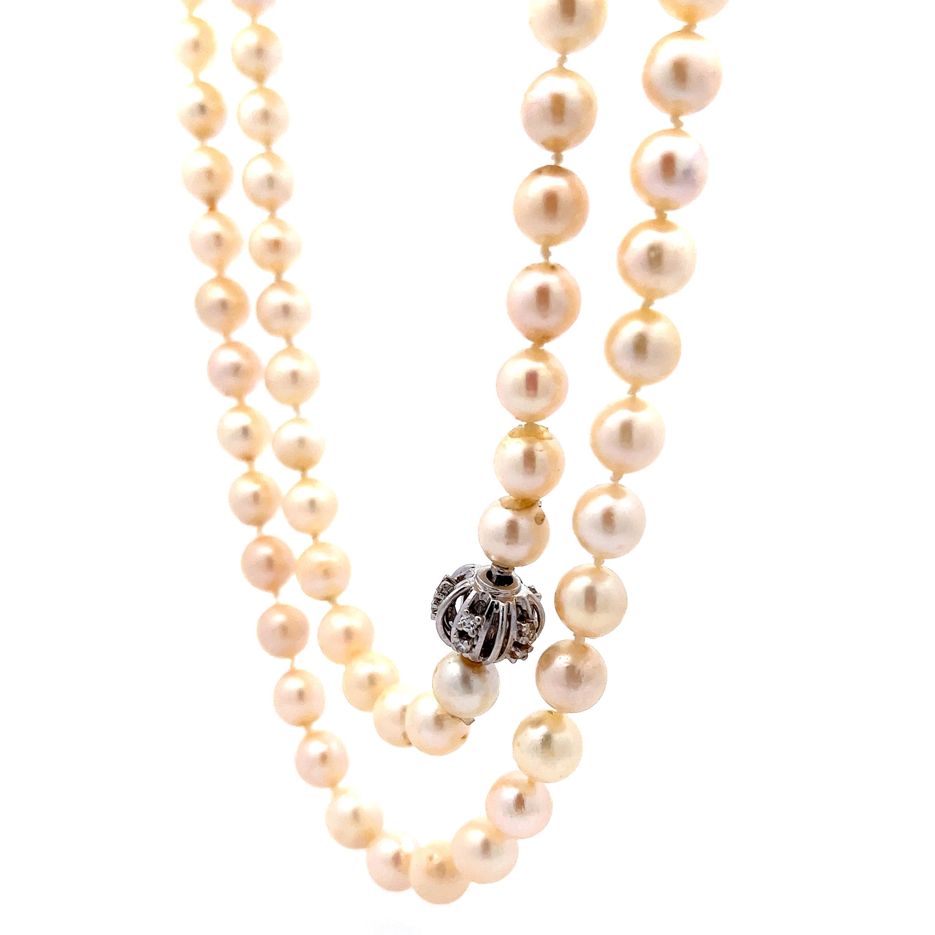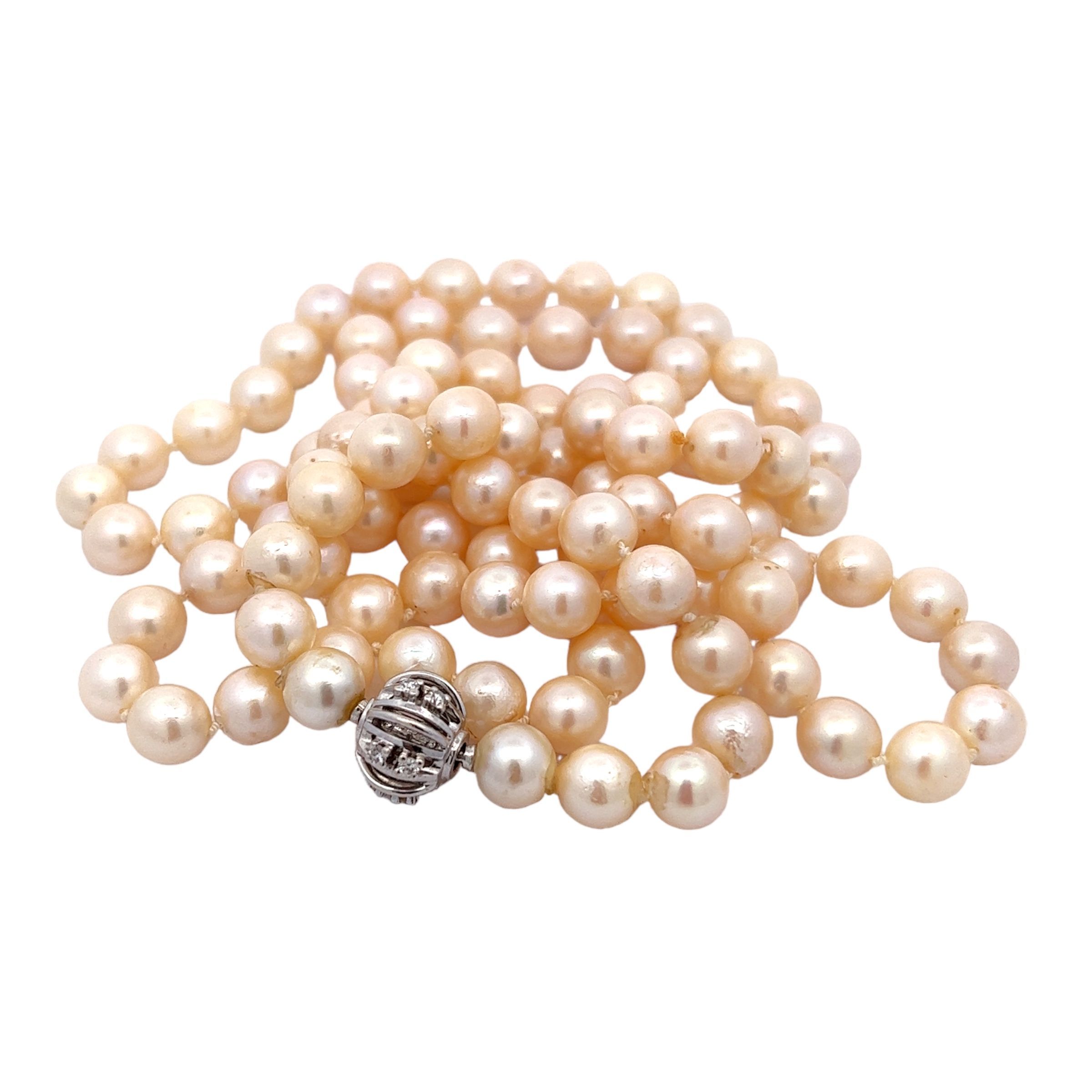 Salzwasser Zuchtperlen Kette aus 14 kt Gold mit 0.30 ct Diamanten - Extra lang